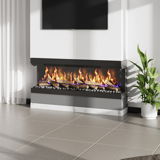 60 Inch Electrical Fireplace with 12 Vibrant Flame Colours, Adjustable Heating Mode
