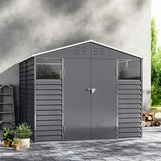 Charcoal Steel Tool Shed with Front Windows and Ventilation