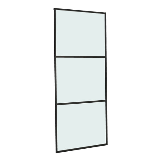 Clear and Smooth Glass Black Barn Door with Sliding Hardware Kit