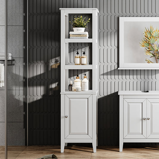 Freestanding Wooden Tall Cabinet with Bottom Shelf