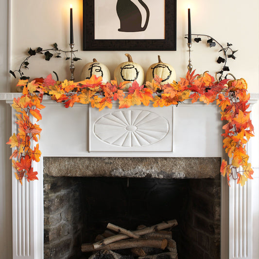 Hanging Artificial Maple Leaf Fall Garland with LED Lights