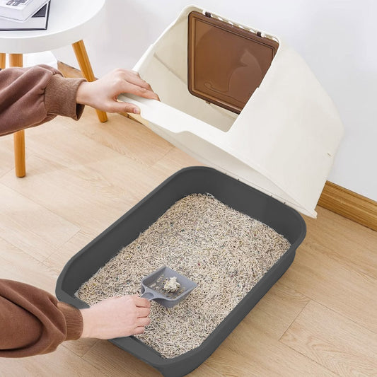 Large Hooded Top Entry Cat Litter Box with Scoop
