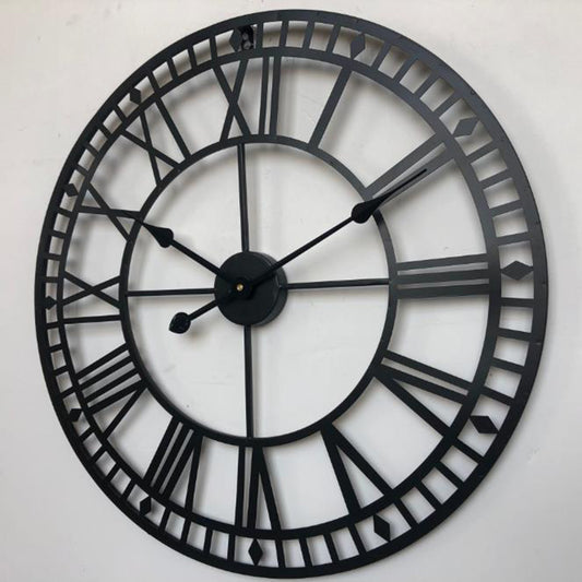Large Decorative Metal Roman Numeral Skeleton Wall Clock