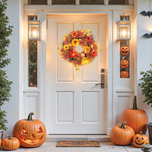 Large Autumn Daisy Maple Leaf Wreath Hanging Decoration