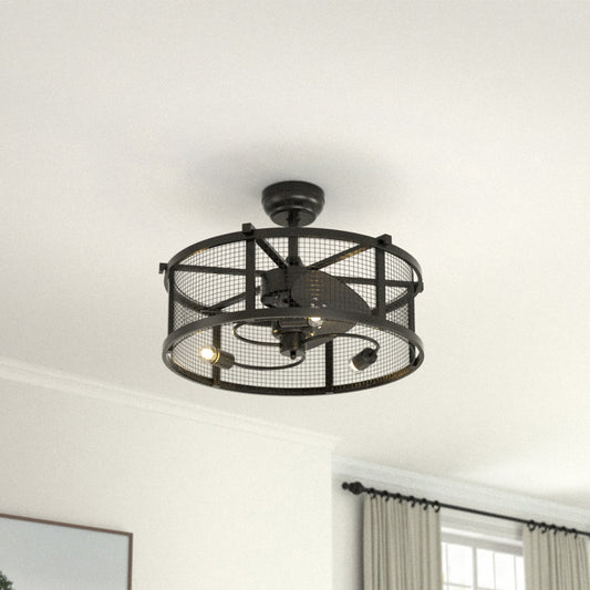 Metal Industrial Ceiling Fan with Lights Black for Living Room