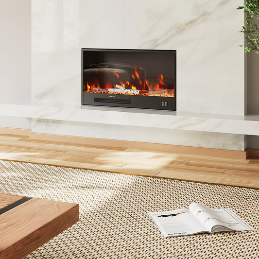 Recessed Electric Fireplace TV Stand with Closed Storage