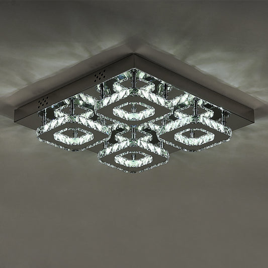 Select Dimmable Option Square Large-size Glamourous Crystal LED Ceiling Light