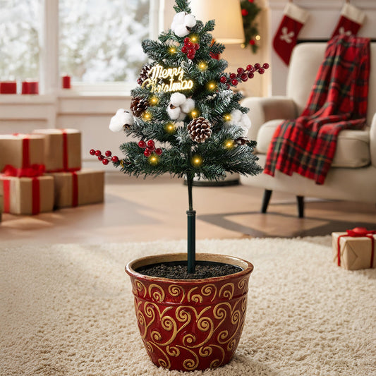 Set of 4 Solar-Powered Artificial Christmas Tree Decorations with String Light