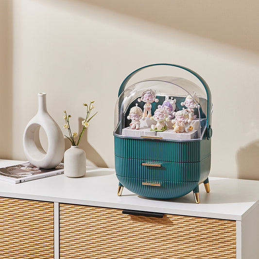 White/Green Elegant Makeup Storage Organizer Box with Drawers and Handle