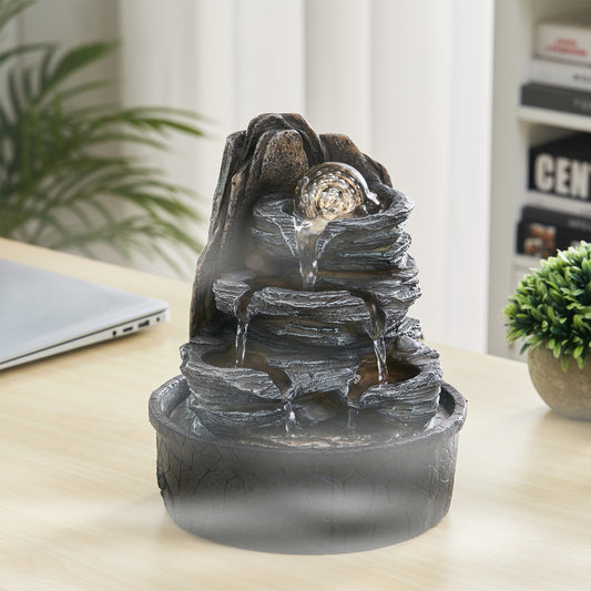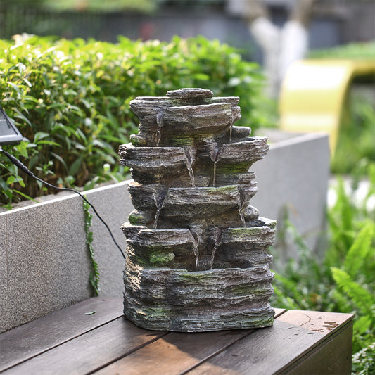 Solar Powered Garden Cascading Water Fountain with LED Lights Rockery Decorated