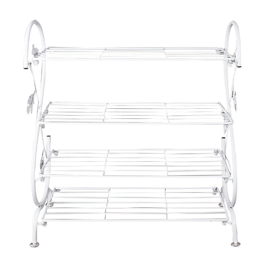 White Metal 4 Tier S-Shape Shoe Rack