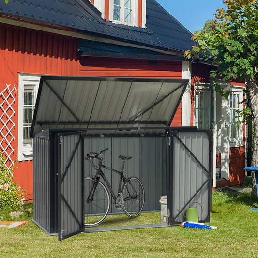 200CM Wide Outdoor Metal Garbage Storage Shed with Hinged Lid
