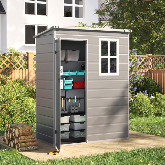 6 x 6FT Durable PP Storage Shed with Pent Roof