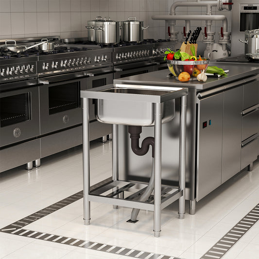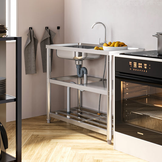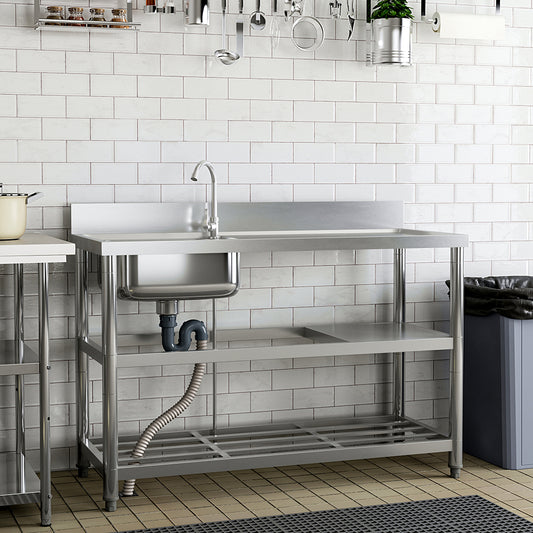 Stainless Steel One Compartment Sink with Shelves and Drainboard