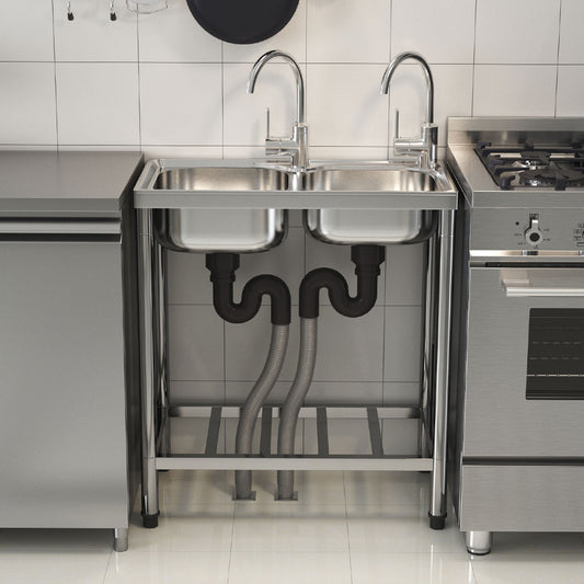 Commercial Kitchen Sink 2 Compartment Stainless Steel