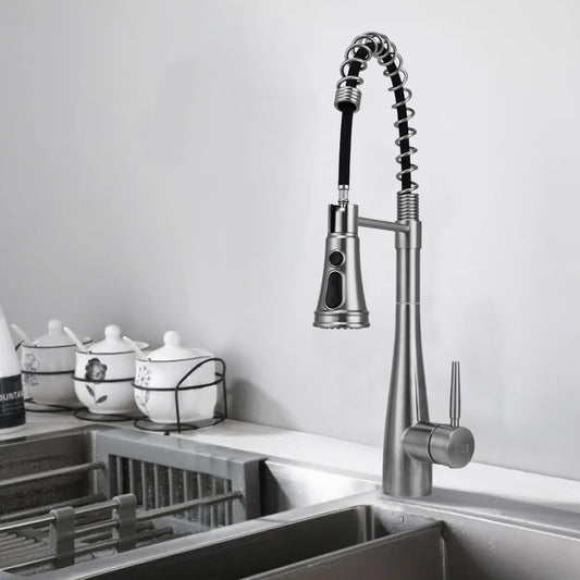 Stainless Steel Kitchen Faucet with Pull Down Spring Spout and Pot Filler