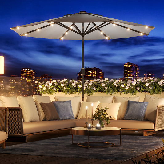 Beige Outdoor Crank Lift Parasol Umbrella with LED Lights