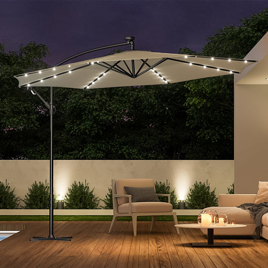 Beige Outdoor Cantilever Parasol Umbrella with LED Lights