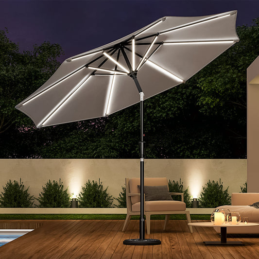 Light Grey 3M Outdoor Parasol Umbrella with LED Lights
