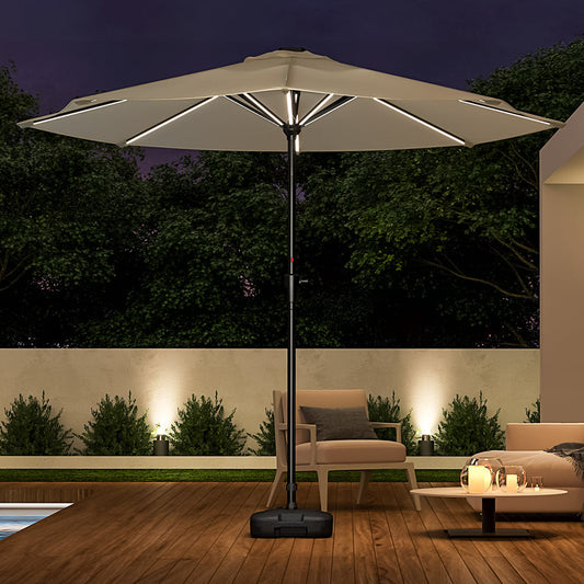 Beige Outdoor Crank Lift Parasol Umbrella with LED Lights