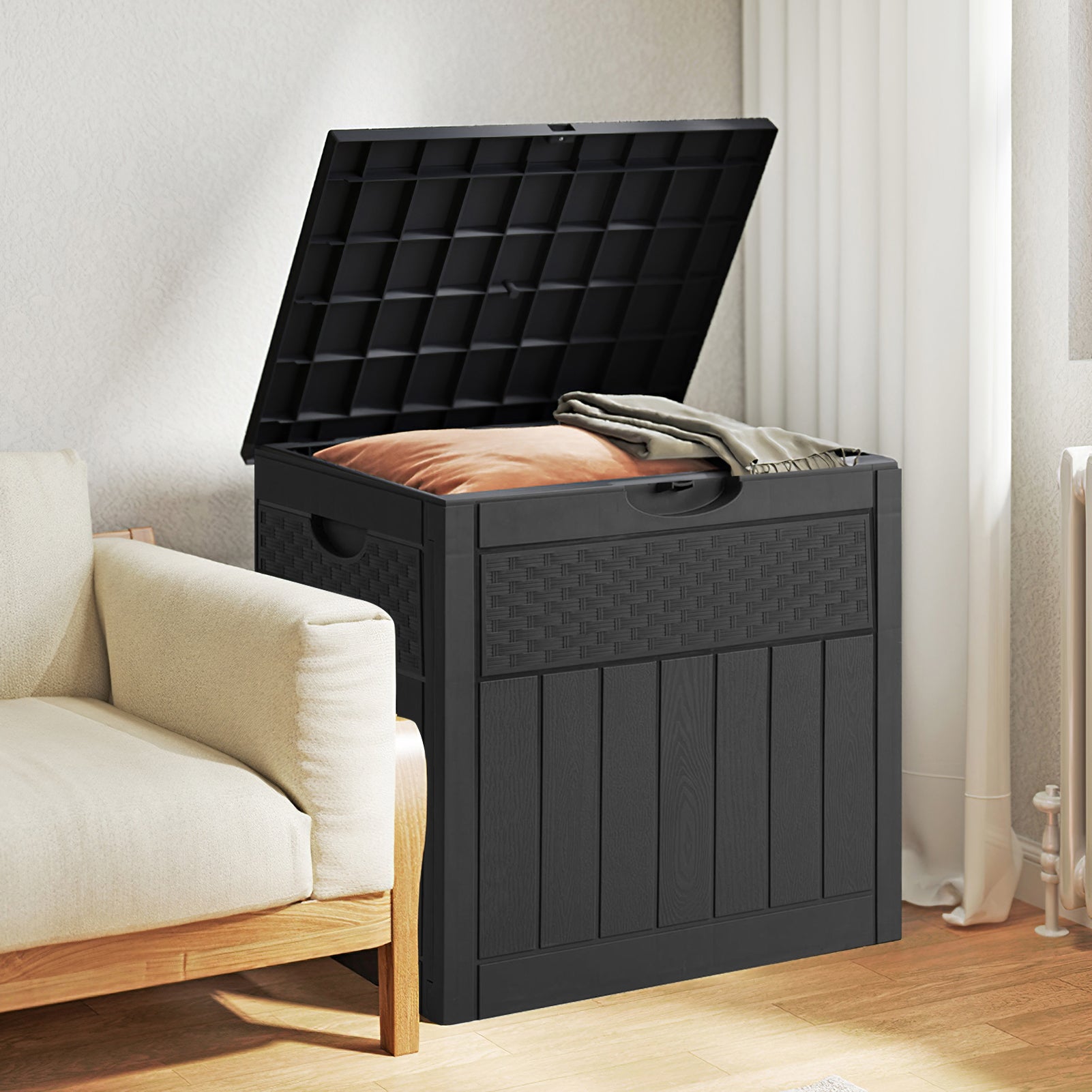 This large plastic storage box features a sleek, modern design that fits seamlessly into both indoor and outdoor settings. Its textured finish adds a subtle, natural touch to any environment. With a spacious 126L capacity, it accommodates everything from garden tools and outdoor cushions to household items and furniture covers. Crafted from high-quality waterproof plastic, this box offers durable protection against the elements for long-lasting reliability. Ideal for use in gardens, balconies, garages, or inside the home, it ensures your possessions remain secure, organized, and well shielded.