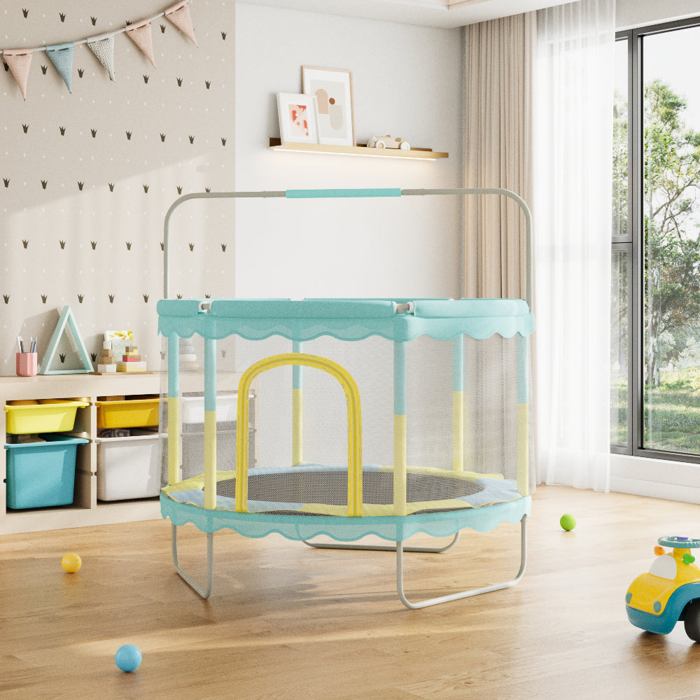 130CM Height Outdoor Kids Trampoline with Balance Bar and Safety Net