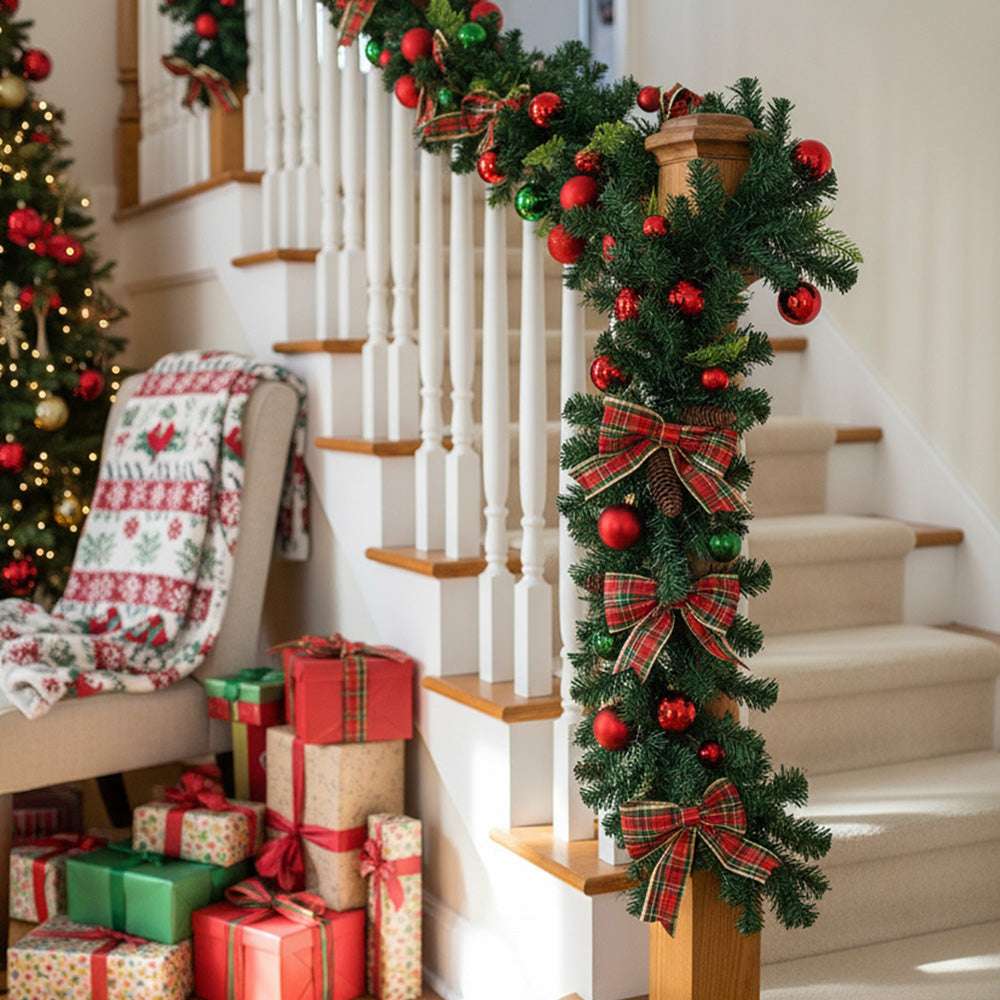 Elevate your Christmas display with this sophisticated 2.7m garland, where integrated LED lighting meets artfully arranged berry balls and poinsettia florals. The lush green base provides a refined backdrop for the carefully selected ornamental elements, creating a balanced aesthetic that commands attention without excess. Ideal for framing doorways, adorning mantels, or accentuating staircase railings, this versatile piece delivers warm, ambient illumination throughout your festive season. The thoughtful design ensures it complements both traditional and contemporary interiors, making it an essential addition for those who appreciate curated holiday elegance.