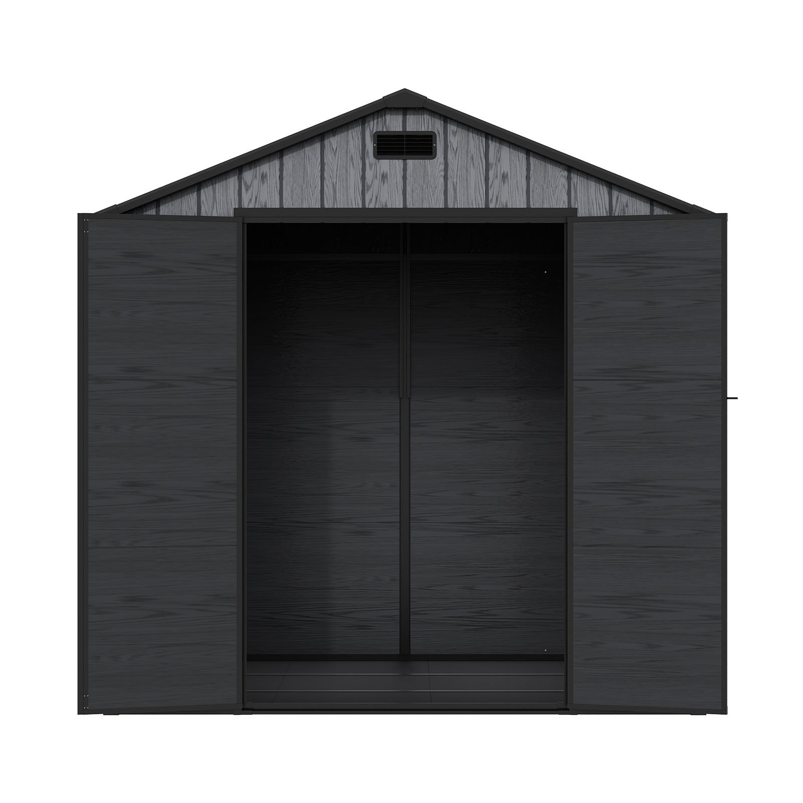 Secure your outdoor gear with this sturdy storage shed featuring a sloped apex roof that efficiently directs rainwater away. Constructed from tough polypropylene panels, it offers resistance to weather, corrosion, and UV damage, ensuring durability. The roomy interior with generous height accommodates various tools and equipment, while the two outward-opening doors provide easy entry. Enhanced ventilation through dual vents helps minimize moisture buildup. Ideal for gardens, patios, or yards, this shed offers a dependable and practical storage option for any external area.