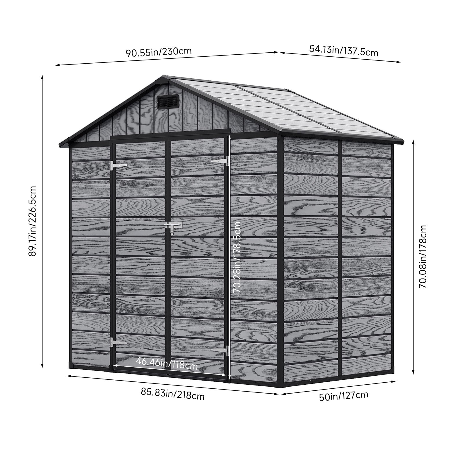 8x4ft Apex Roof Garden PP Tool Shed Outdoor Patio Storage House