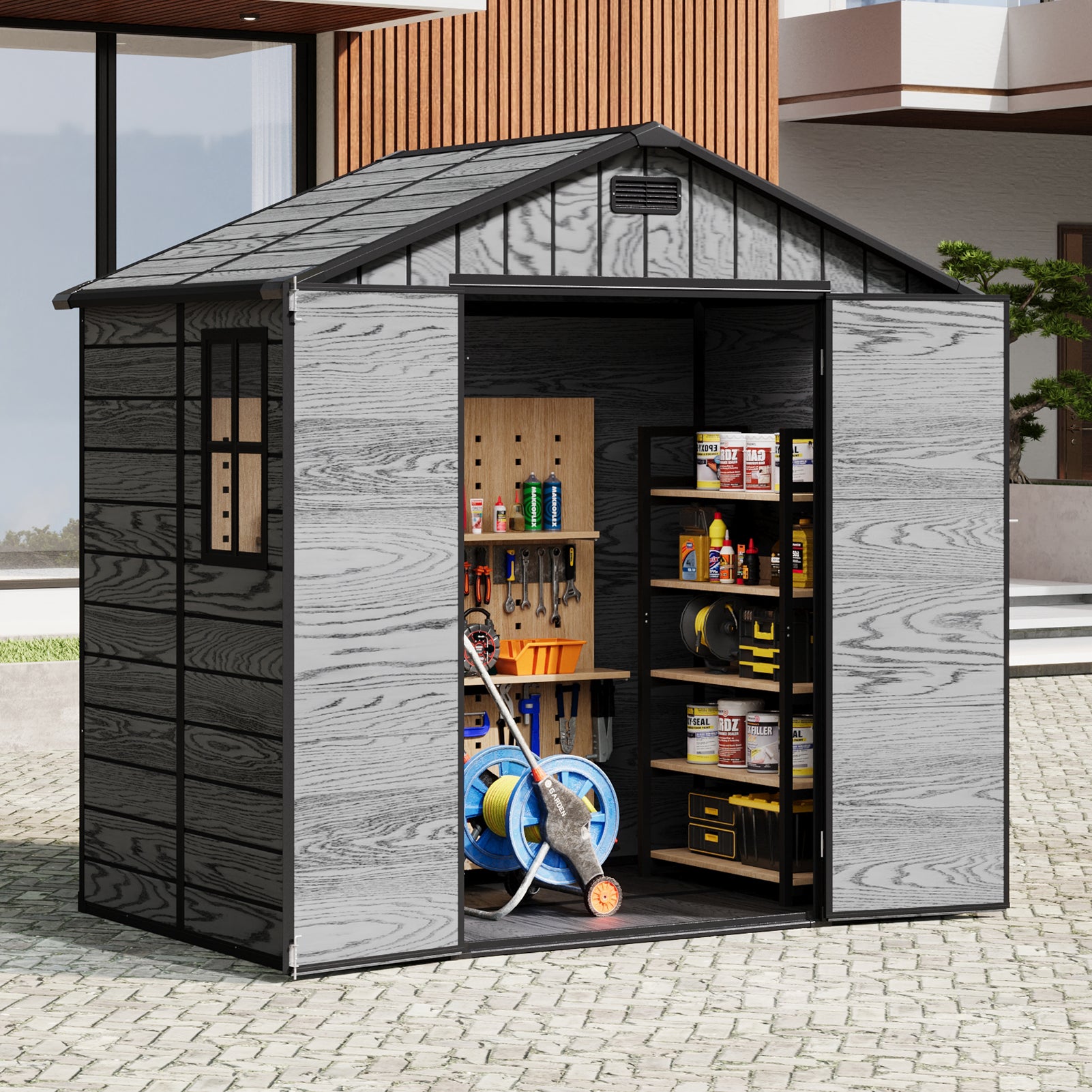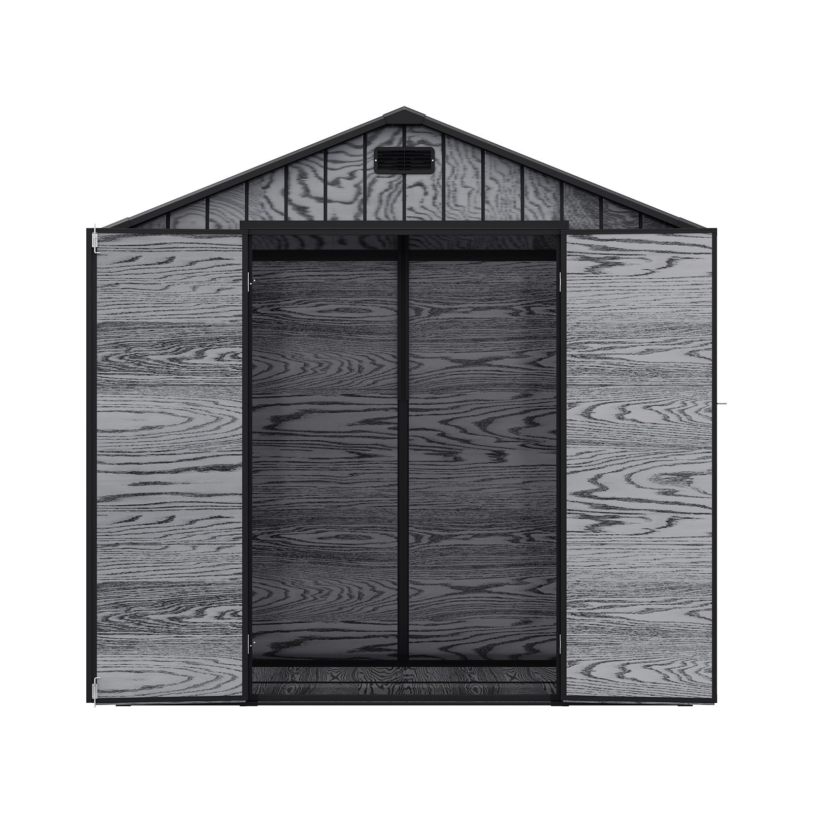 This well-designed tool shed combines functionality with style. Its window lets in natural light to reduce dampness, while built-in vents promote airflow to keep your tools dry. The smart interior layout optimizes storage space, ensuring garden tools, outdoor gear, and DIY supplies are neatly arranged and easy to reach. Ideal for both DIY enthusiasts and professionals, this shed creates an efficient and organized workspace, streamlining your projects with ease.
