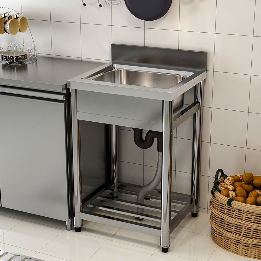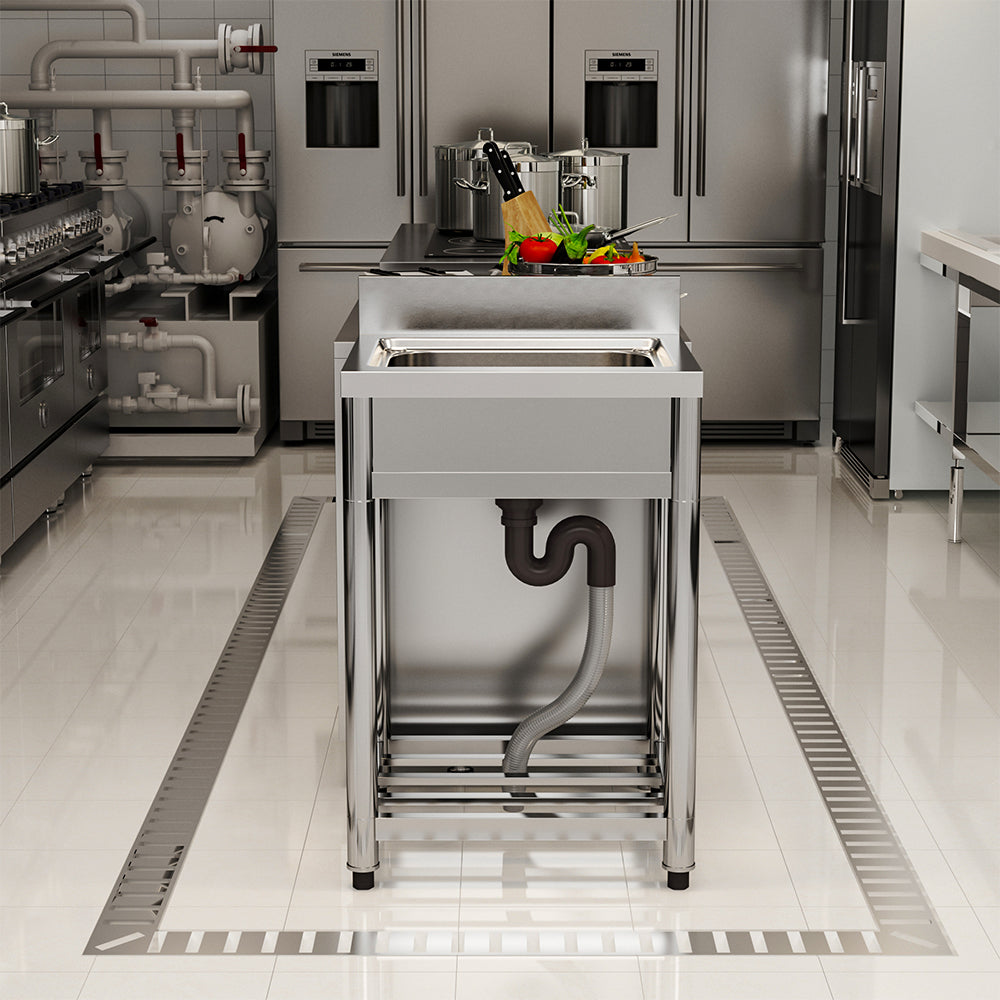 Designed for commercial environments, this stainless steel single bowl kitchen sink combines durability with functionality, making it an ideal choice for restaurants, cafes, hotels, and catering kitchens. The single bowl design offers ample space for washing dishes, cutlery, and food prep, while the included stainless steel drainer set and strainer basket with stopper help prevent clogs and ensure smooth drainage. This commercial sink is the perfect addition to any professional or heavy-duty kitchen, offering reliable performance and long-lasting quality.