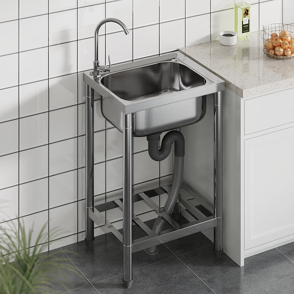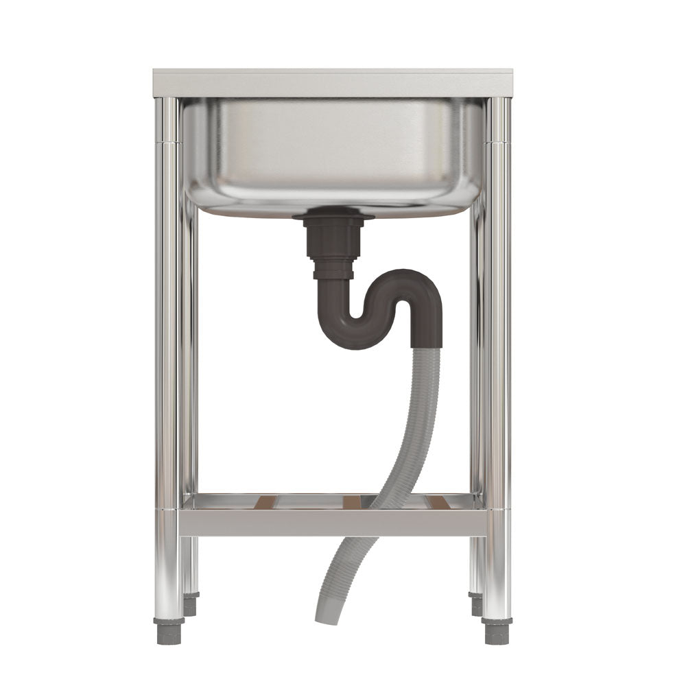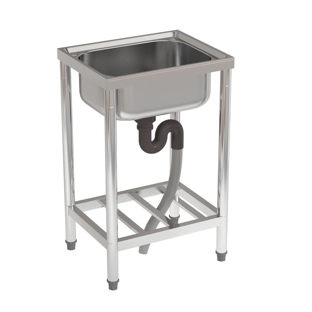 This commercial-grade stainless steel sink is perfect for efficiently washing fruits, vegetables, dishes, and cookware. Its deep basin accommodates multiple cleaning tasks simultaneously, while the elevated countertop design helps keep spills off your clothing. A convenient lower shelf offers additional storage for cleaning essentials. Equipped with a silencing pad beneath the basin, it minimizes water noise, ensuring a quieter and more comfortable workspace.