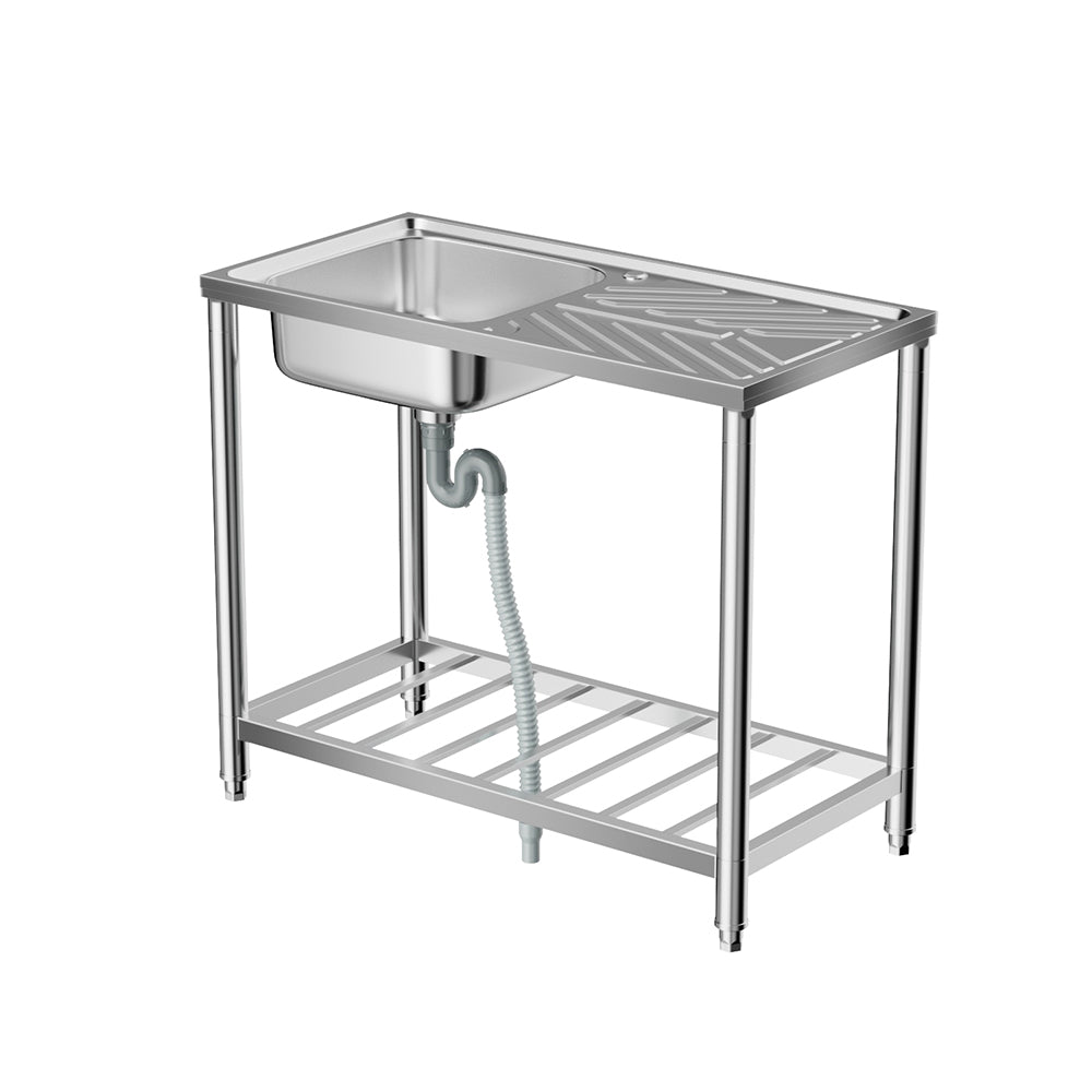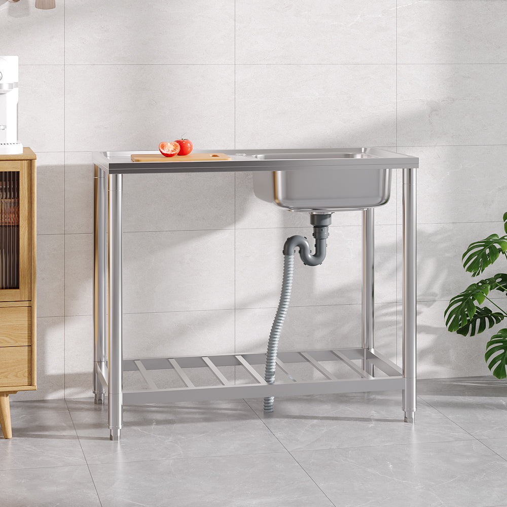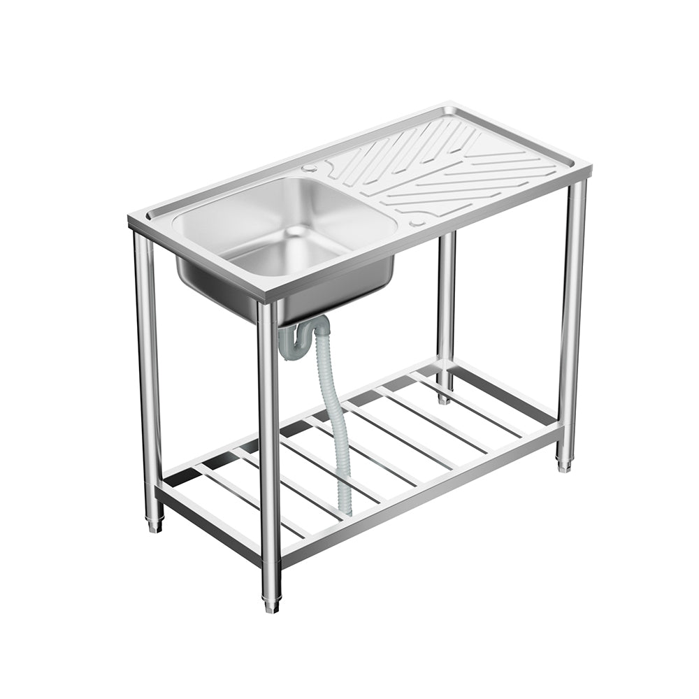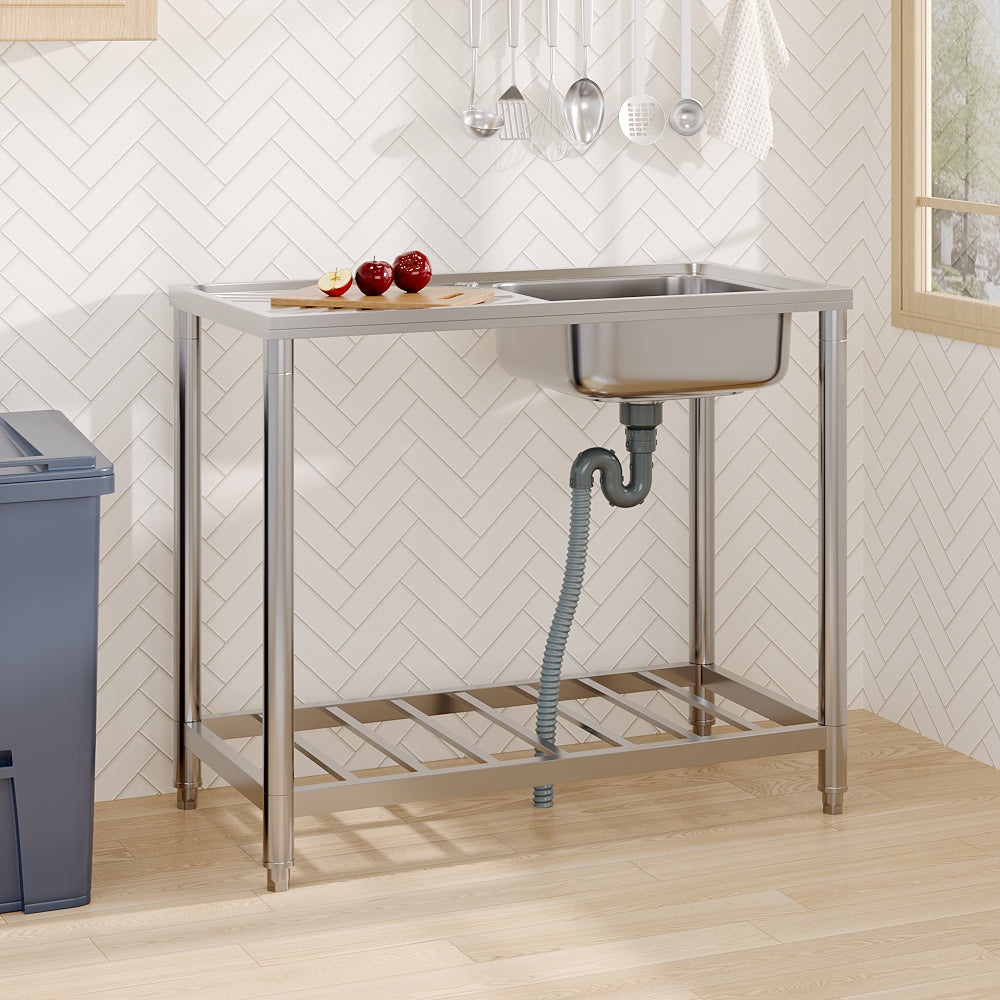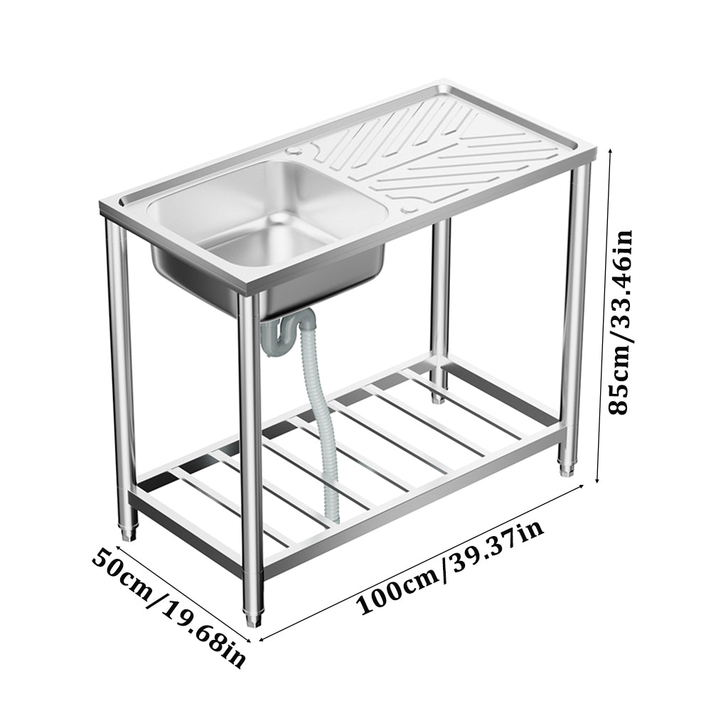 This commercial sink offers generous space for efficiently washing fruits, vegetables, and dishes, making it ideal for home kitchens, restaurants, and outdoor setups. Constructed from robust stainless steel, it resists scuffs and impacts while ensuring food safety. The integrated right-side drainboard provides additional drying area for cutlery, plates, and cookware, boosting functionality. Its portable design and easy installation make it a practical and valuable addition to any kitchen environment.