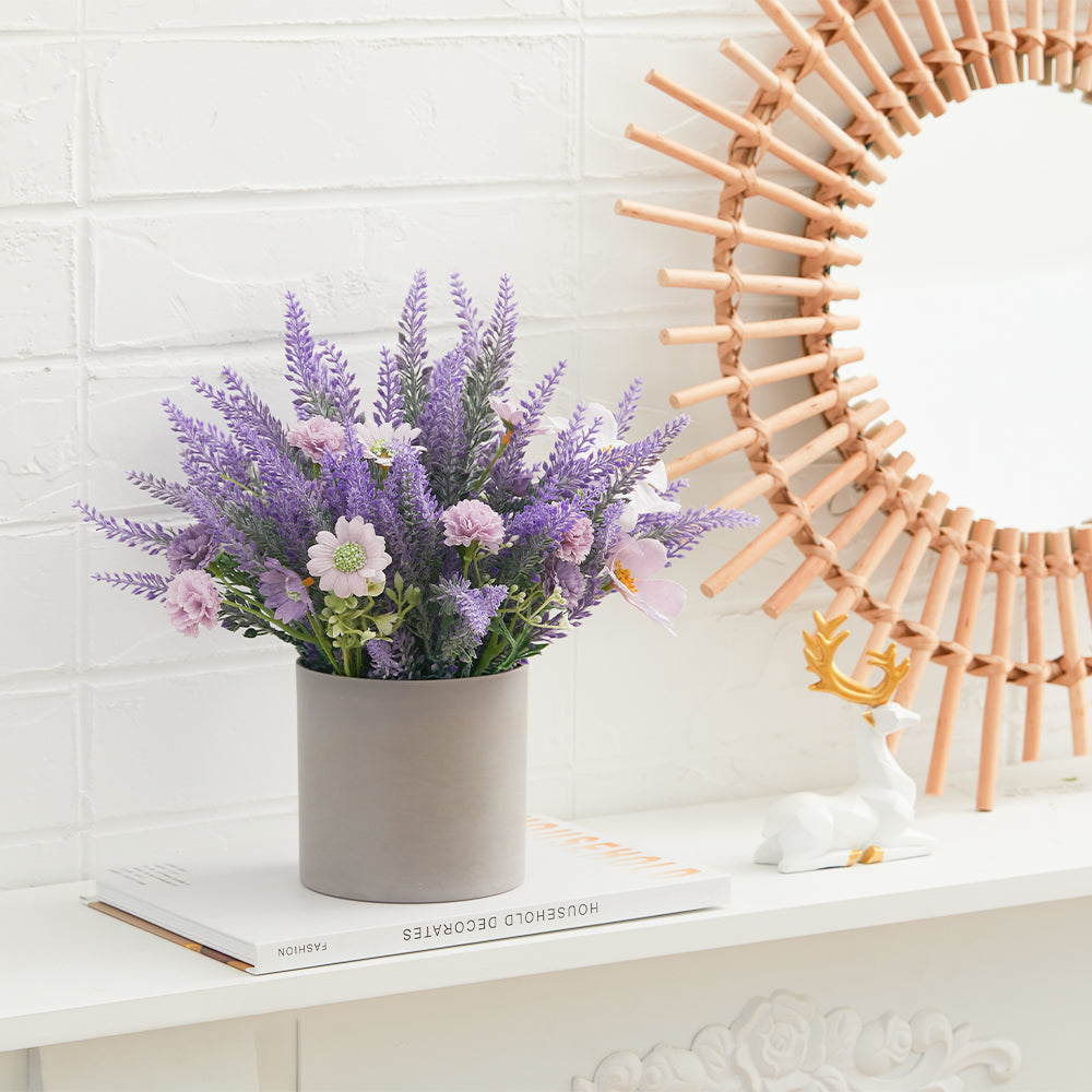 Crafted with soft silk materials, this lovely artificial lavender potted purple flower adds a touch of nature to any space with its realistic natural vibe. The delicate cream-hued blossoms are arranged in a rustic wood planter with charming lettering, making it a charming and elegant addition to any home decor. Use this floral arrangement to add charm to your tabletop or complete your sofa side table.