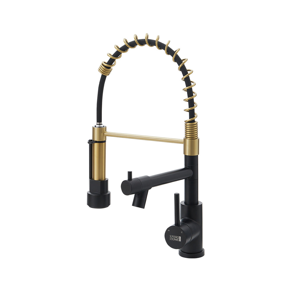 Stainless Steel Kitchen Faucet with Pull Down Spring Spout and Pot Filler