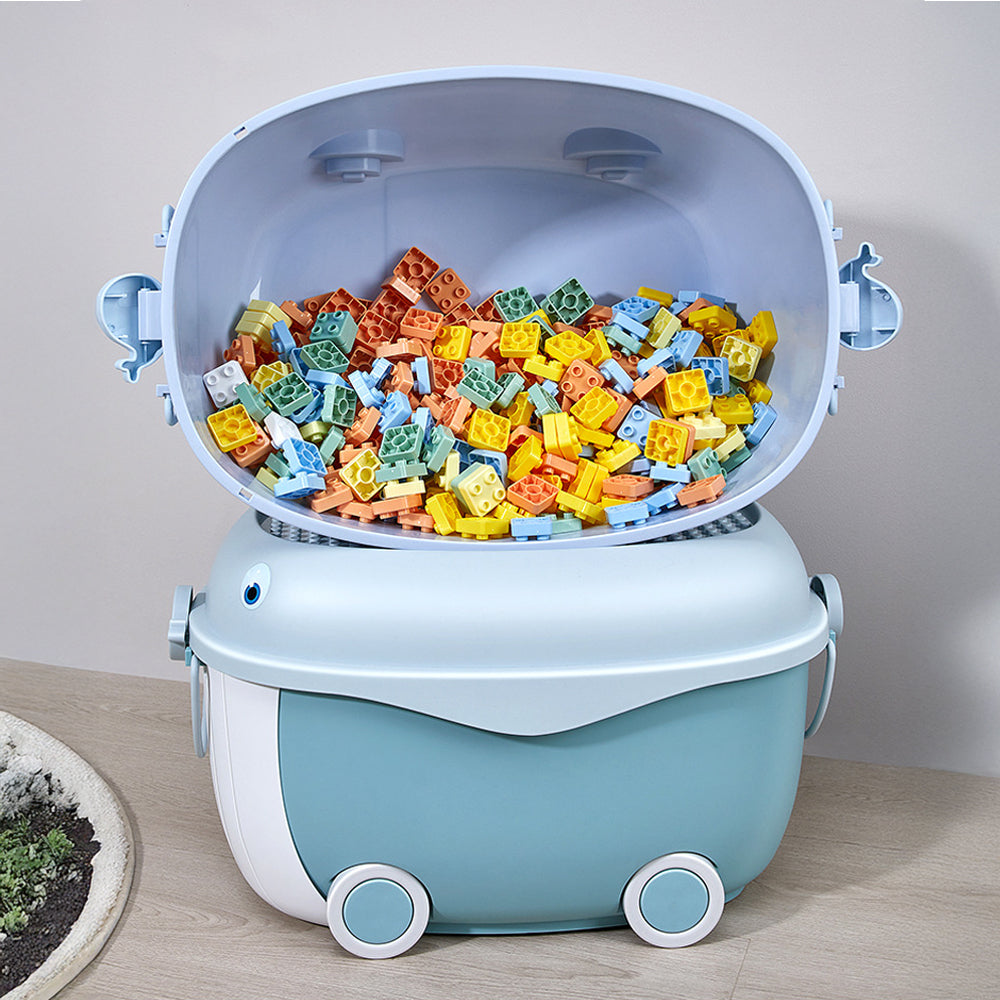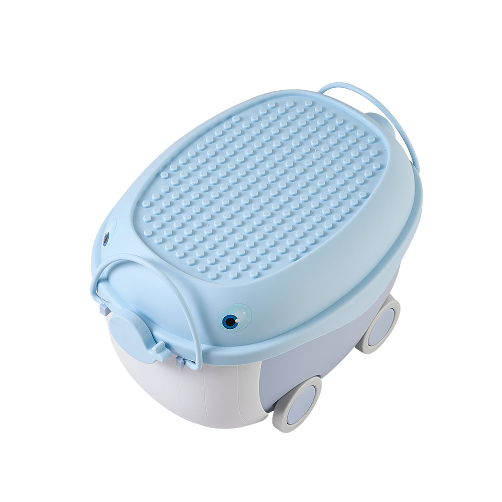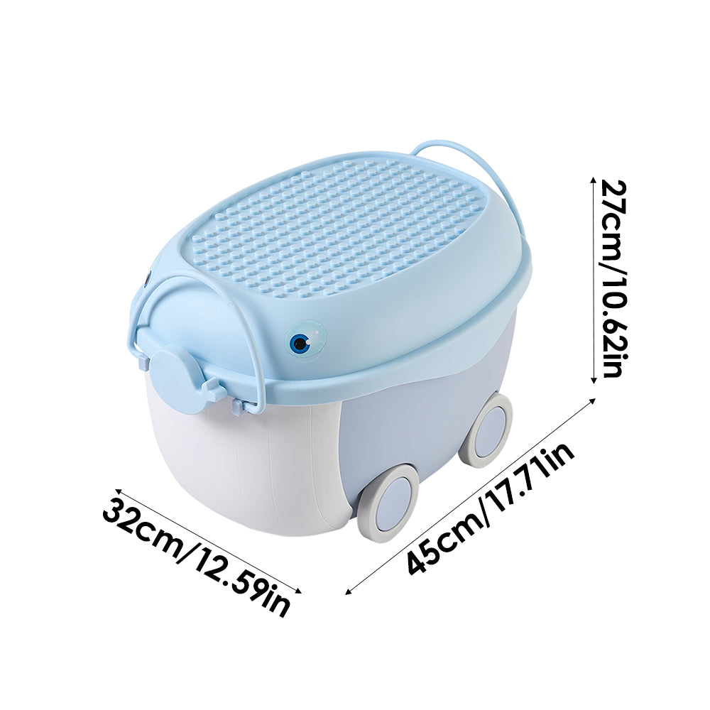 Make tidying up fun with this adorable dolphin-shaped toy storage box! The vibrant colours and cute design will instantly capture the attention of your child, encouraging them to keep their toys organised. The innovative lid incorporates a building block surface, compatible with widely available brick-based toys. It doubles as a handy surface for drawing or crafts. The comfortable handle and smooth-rolling wheels make it easy for kids to move the box around the house or even outside. Plus, all edges are meticulously rounded to prevent accidental injury. It is a brilliant way to encourage good habits while adding a splash of fun to any room!