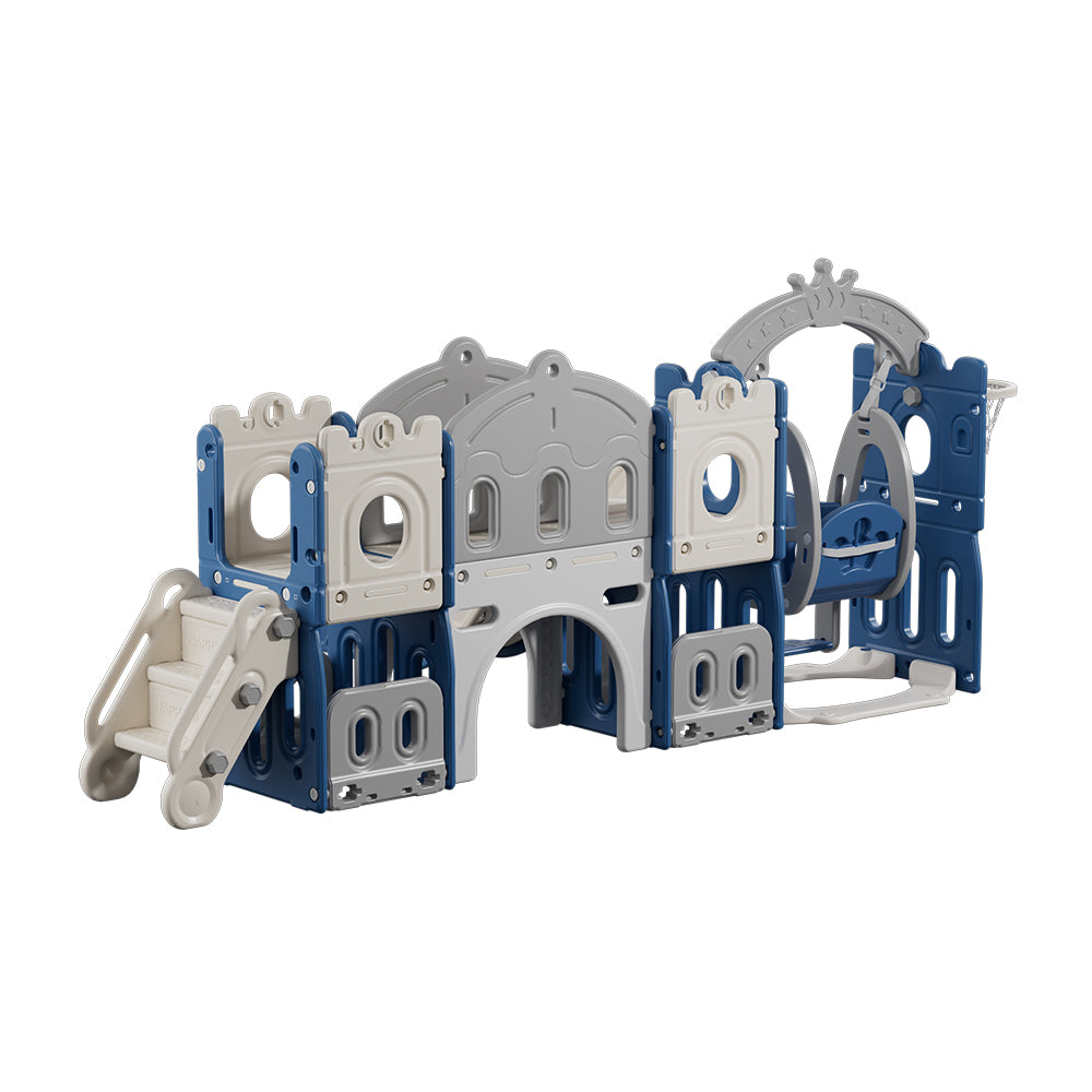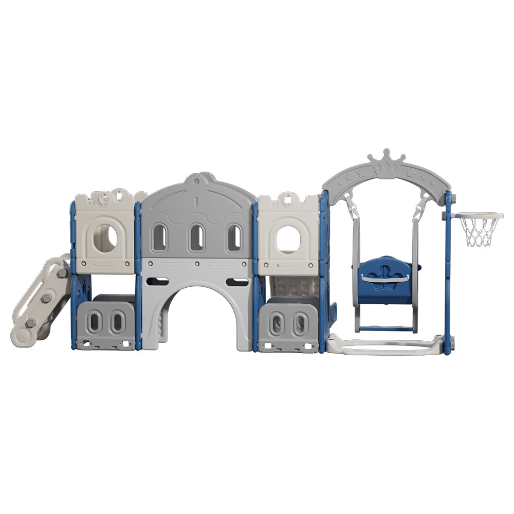 Capture the excitement of any child with the Swing and Slide Playset, offering hours of imaginative play. Designed to release the nature of the children, this playset integrates a slide, a swing, a ladder and a basketball hoop for endless entertainment. What is more, the kids can score by kicking the ball through the arch. Crafted from high-quality, non-toxic, and odourless materials, this playset ensures safety and stability for lively play. With its waterproof construction, it can be enjoyed indoors or outdoors, making it a versatile playset.