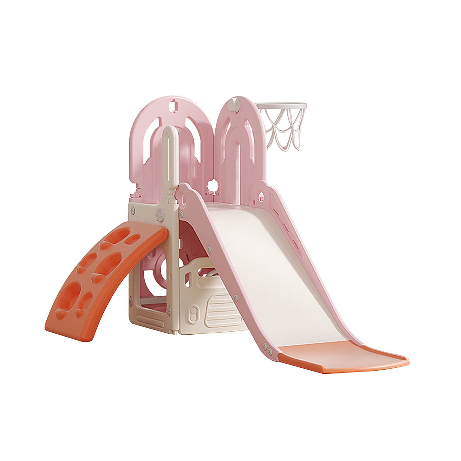 This multi-in-one playset is the perfect home playground addition. It features a slide, climber, basketball hoop, and storage space for kids. Built for stability, it is ideal to withstand the energy of active play. Crafted from eco-friendly, child-safe HDPE material, it ensures safe, active play. With its easy assembly and slip-resistant surfaces, it provides secure, engaging play for your little explorer. This compact playground brings the excitement of an amusement park home—no lines, no hassle.