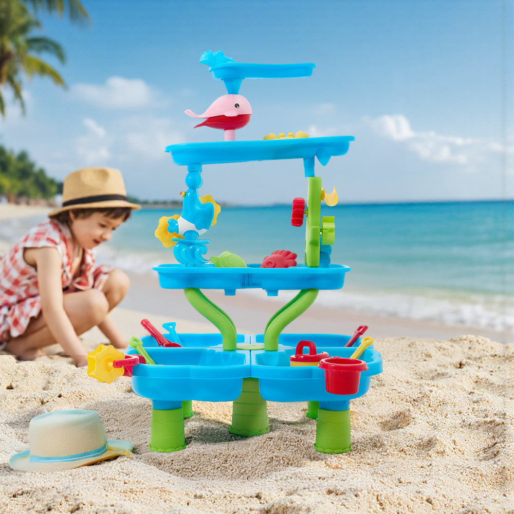 This versatile sand and water table set sparks endless creativity in children! The set includes a variety of accessories like whale, dolphins, boat, and a watering can. Kids can pour water to spin the windmill or use molds to create lifelike animals in the sand. The vibrant colours and interactive design ignite imagination while enhancing sensory development and hand-eye coordination. Perfect for indoor playrooms or outdoor beaches, its lightweight design makes it easy to carry. Encourage teamwork as kids collaborate with friends and family to create unforgettable summer fun!