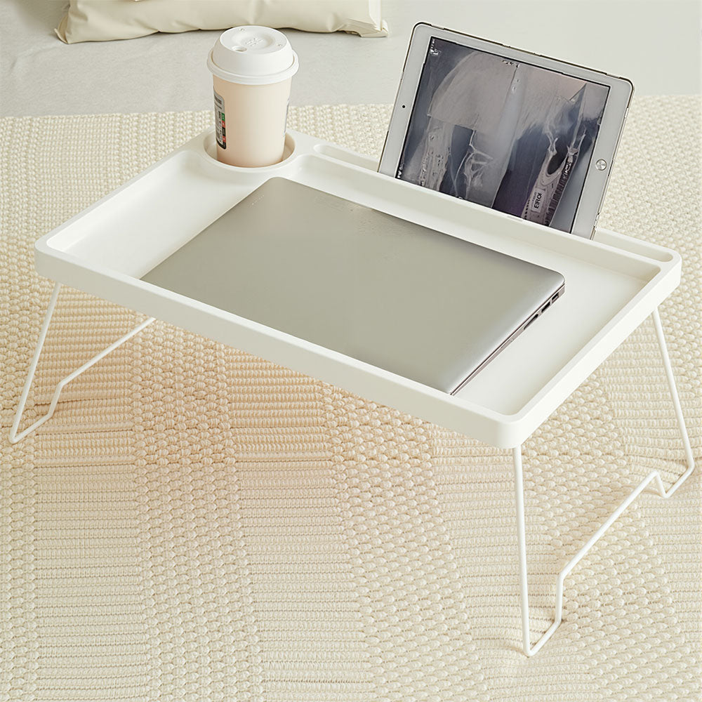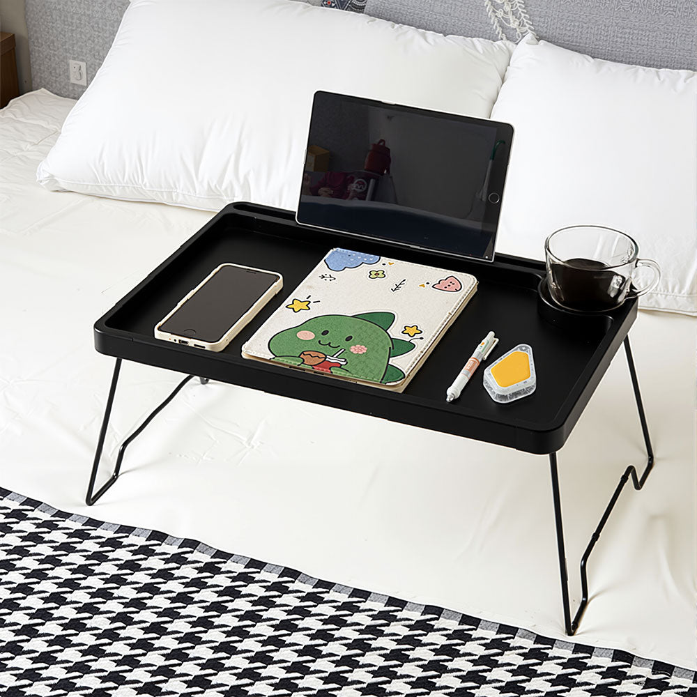 This bed table offers both style and practicality for a variety of uses. The generous tabletop provides ample room for your laptop, books, snacks, or morning coffee. A PP top ensures resistance to scratches and water penetration, making it as durable as it is stylish. Lightweight yet sturdy, the foldable metal frame allows for effortless storage when not in use, making it ideal for compact living spaces. Whether enjoying breakfast in bed, working from home, or unwinding with a good book, this versatile table adapts beautifully to your needs.