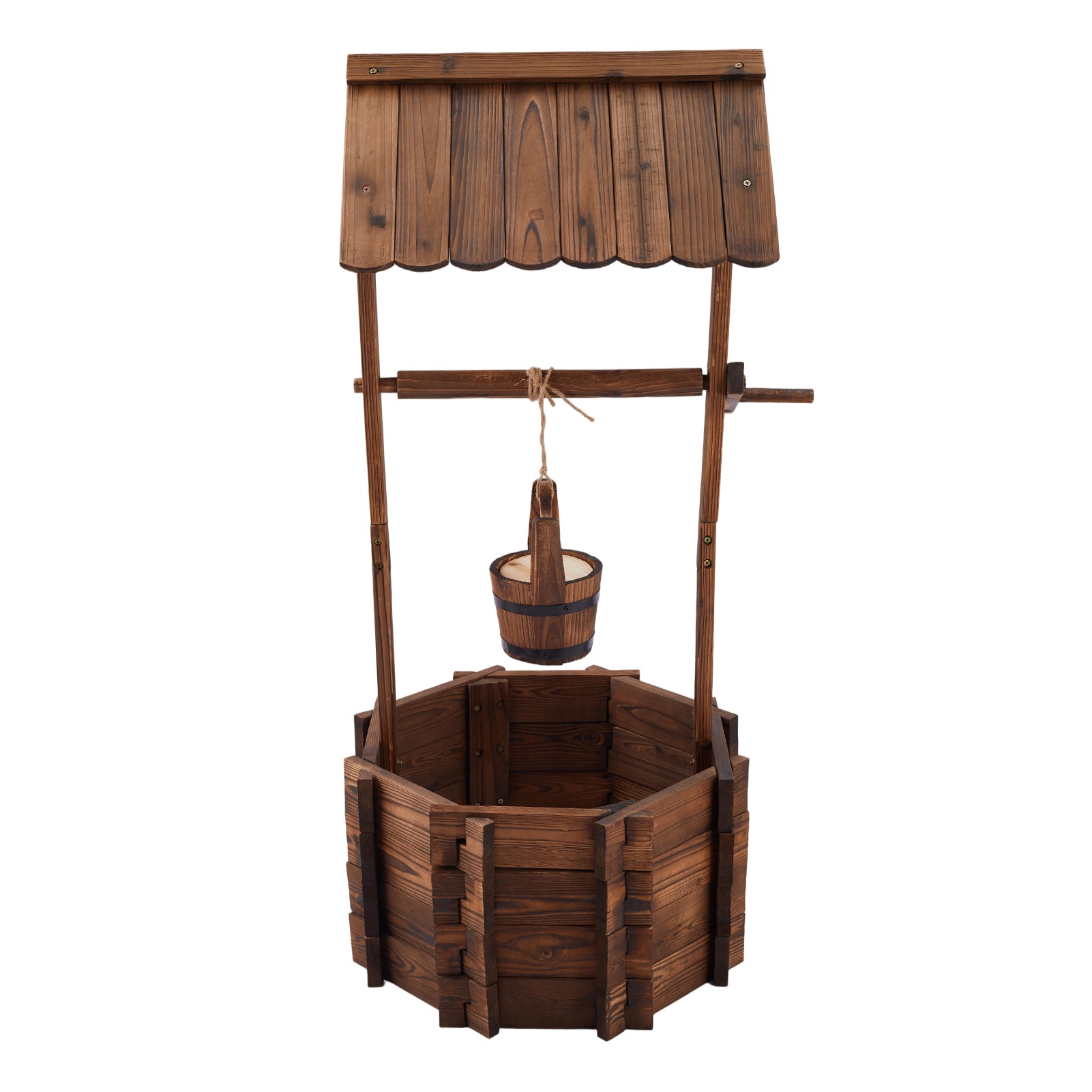 Rustic Wooden Wishing Well Planter Gardening Decor