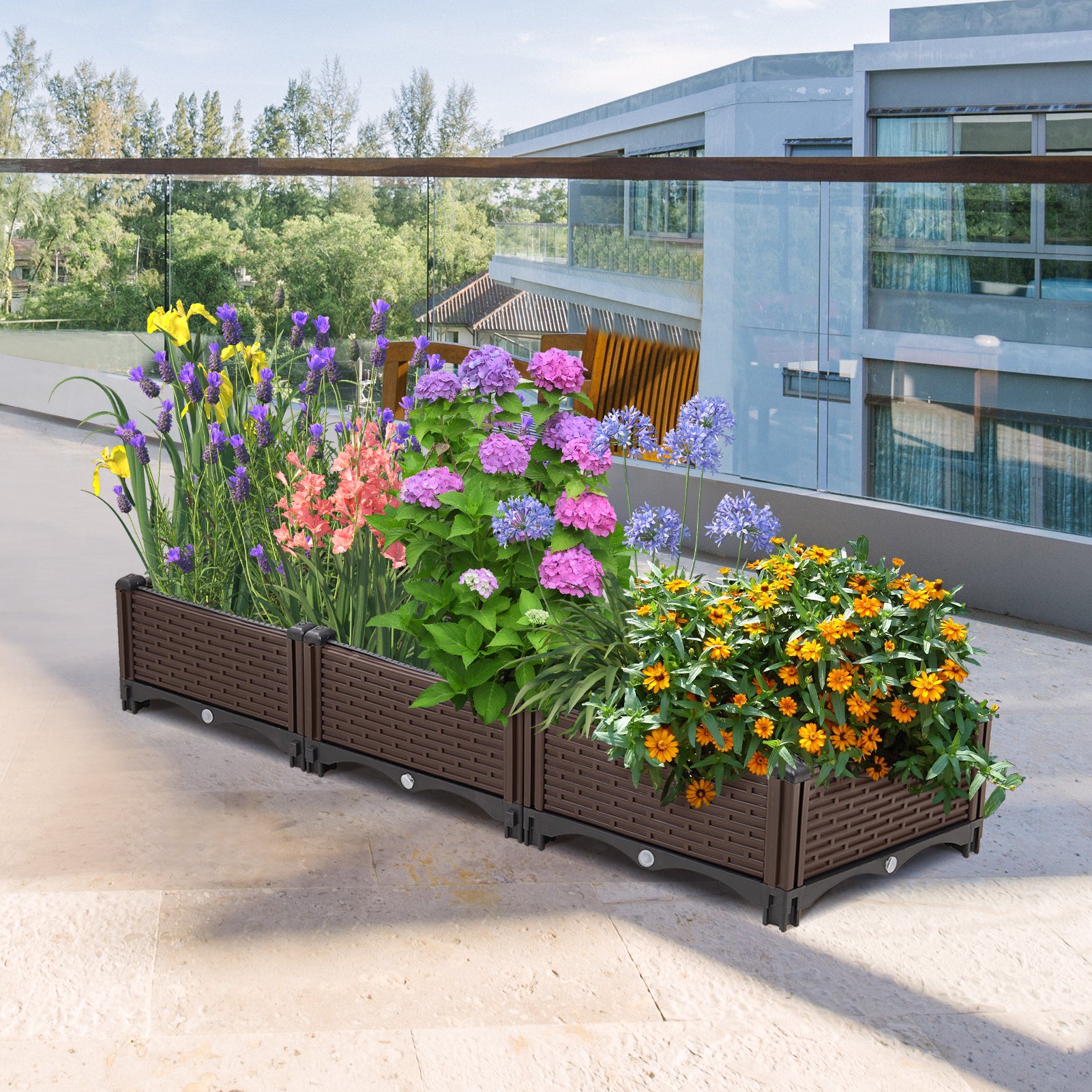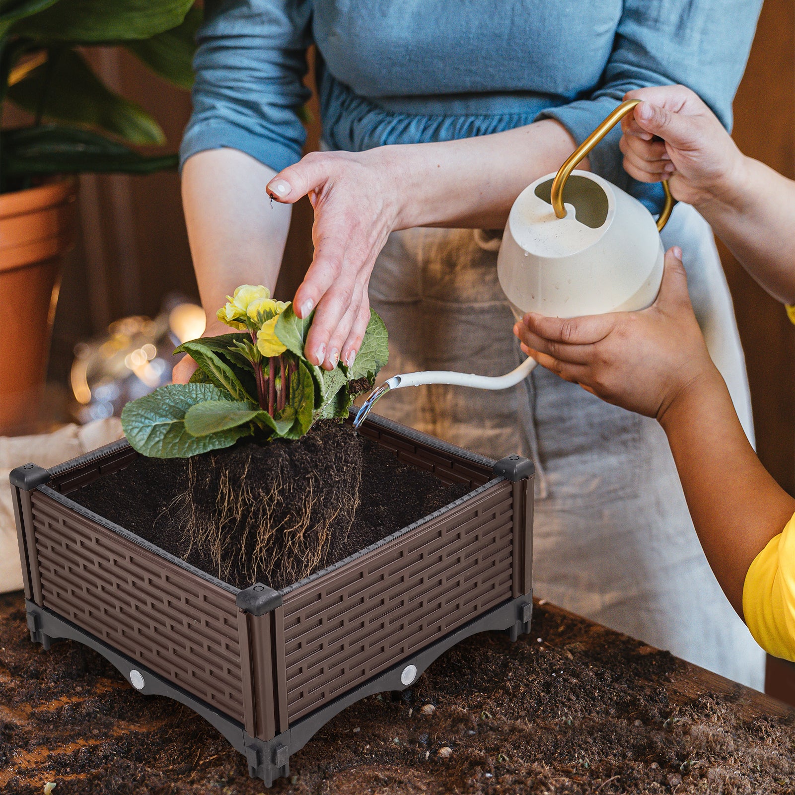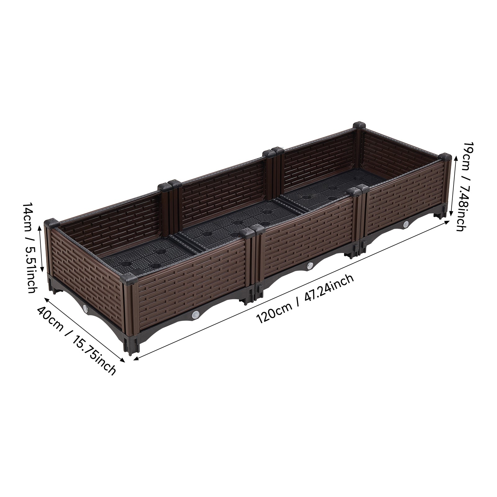 Let nature effortlessly blend into your life! This raised garden bed is the perfect choice for growing fresh vegetables, aromatic herbs, or creating a small garden. The pattern on the side panels adds a natural aesthetic, effortlessly complementing various environments and enhancing the overall decor of your garden or balcony. Its unique water-retaining chassis design helps trap excess moisture, while the removable plug makes it easy to adjust the water level, ensuring healthy plant roots. More importantly, the built-in drainage board not only improves drainage but also prevents plant roots from being directly submerged in water. It is perfect for planting on balconies, gardens, patios, and other spaces.