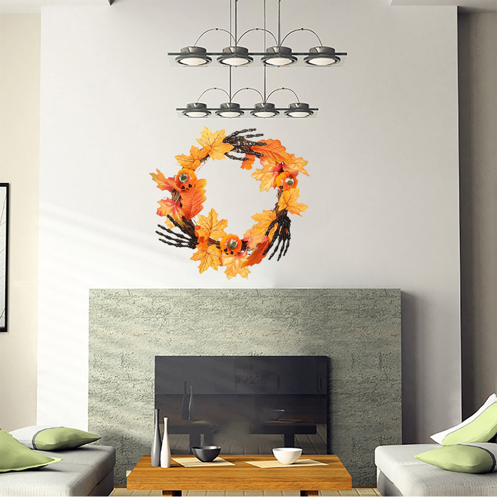 Halloween Wreath Hand Pumpkin Wreath for Front Door Decor