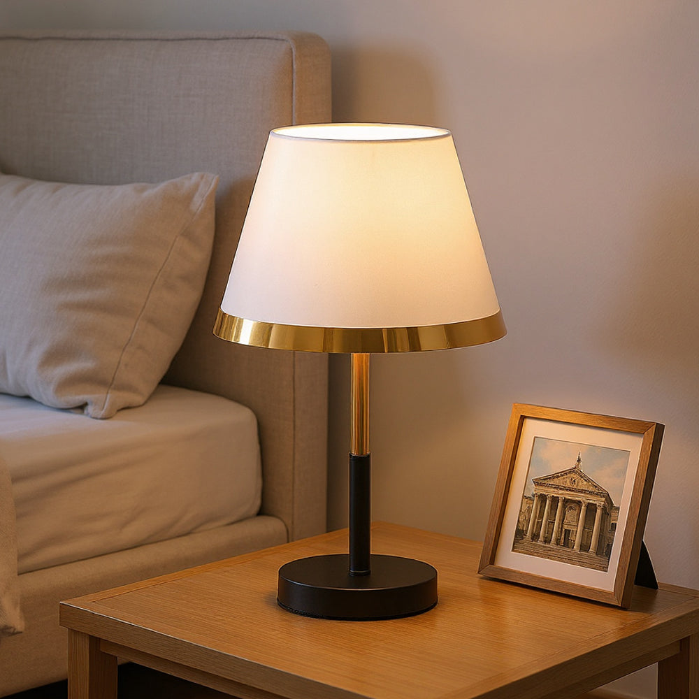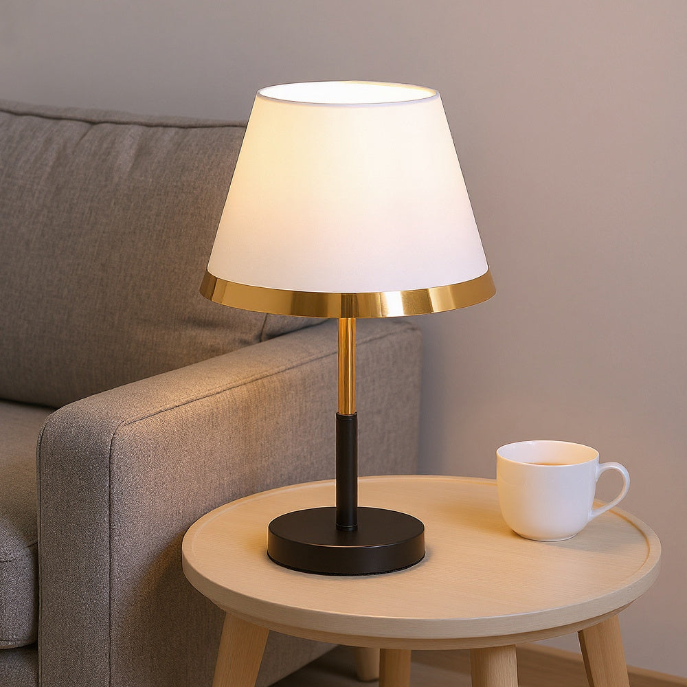 Looking to add a touch of understated elegance to your home? This table lamp boasts a classic cone-shaped design with a white lampshade trimmed with gold, effortlessly blending into any décor, from minimalist modern to cosy Scandi. The fabric lampshade diffuses a soft, warm light, perfect for creating a relaxing ambience. Plus, with adjustable colour temperature settings, you can switch between warm white, natural, and cool white light to suit your mood and needs. Whether you need a stylish reading light, a functional office lamp, or simply a beautiful decorative piece for your living room, this versatile lamp is the perfect choice.