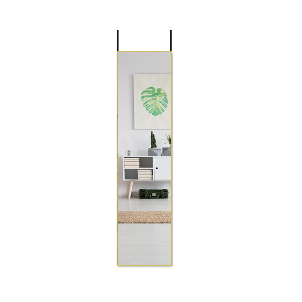 Elevate your space with this sophisticated full-length mirror, featuring a refined gold metal frame that embodies understated elegance. Designed for flexibility, it offers three installation options: hang from any door using the integrated hook, affix to walls with included adhesive strips, or position freestanding for effortless repositioning. The expansive reflective surface maximises light and creates an illusion of spaciousness, making it an ideal solution for compact interiors or rooms requiring a polished finishing touch. Its minimalist aesthetic complements contemporary and traditional décor alike, delivering both functional utility and visual refinement.