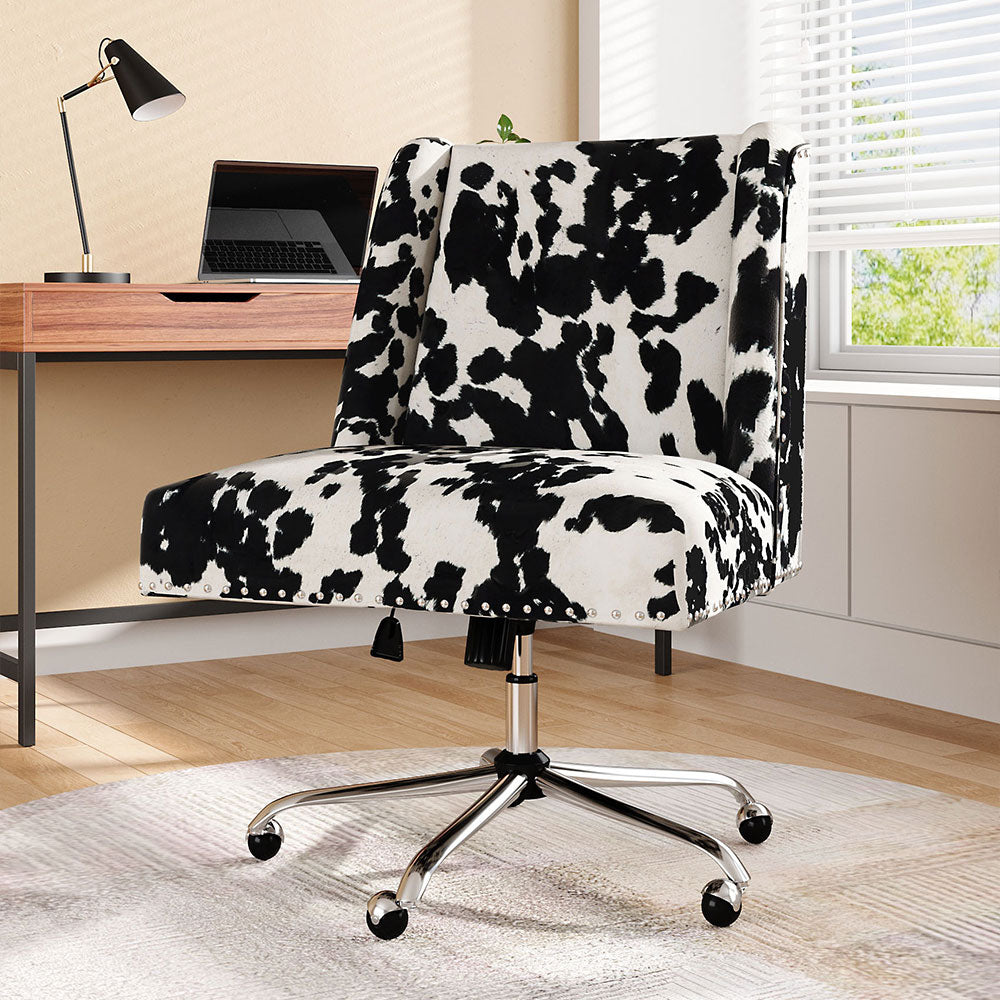 Whether it is office or your study, this modern office chair upholstered in milk cow print can fit in well. The animal pattern on the chair is eye-catching and impressive, our office chair show you that office chairs don't have to be boring and formal. Wrapped in super soft velvet, the chair doesn't create any wrinkles and has a feather-like touch.