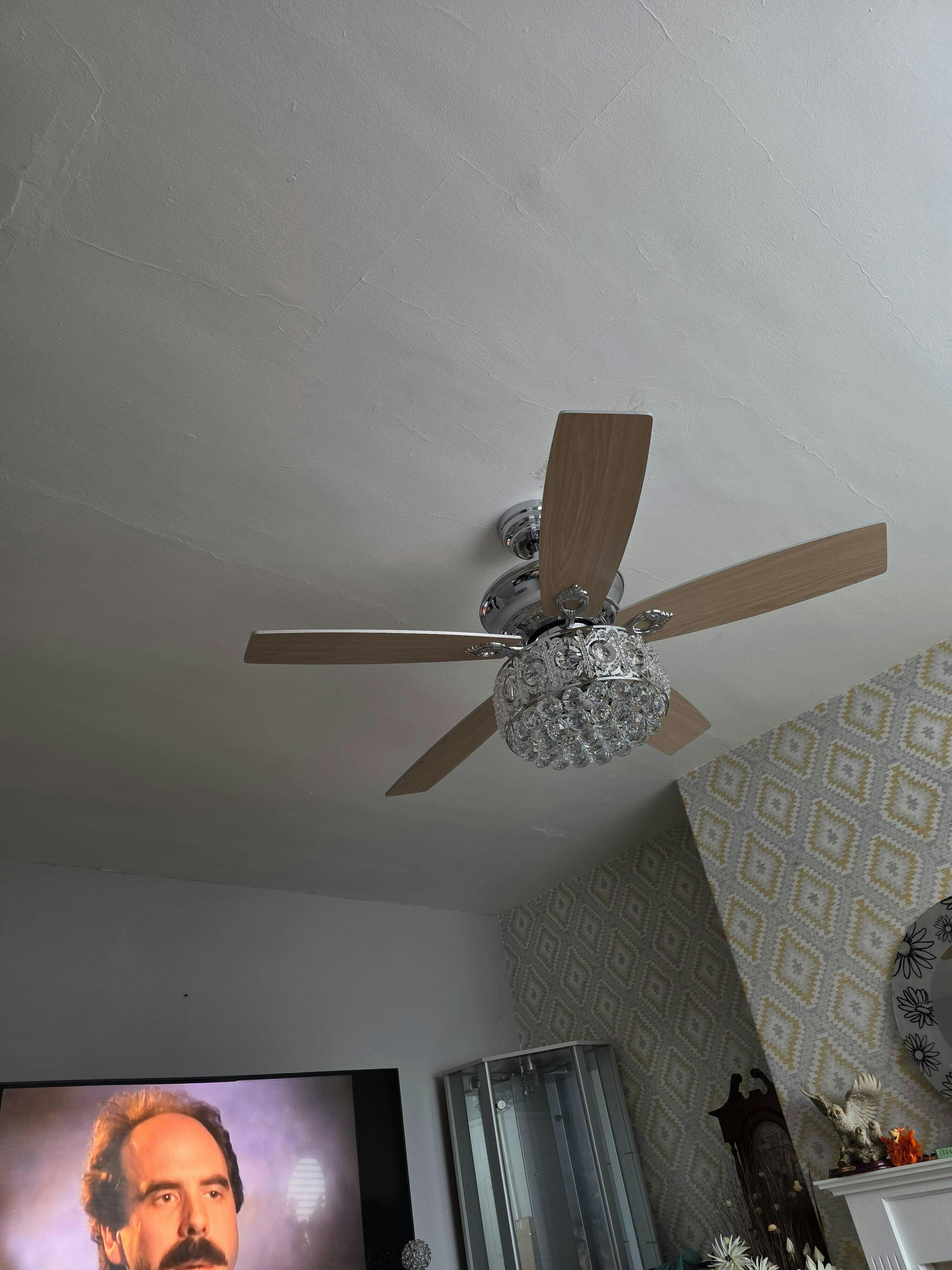 Bought this fan and my brother installed it perfectly, very large and solid ,its absolutely stunning 😍 I am glad I bought it ,it's a amazing centre piece, the crystal were fiddly. If you buy this you will not be dissapointed at all because I love it