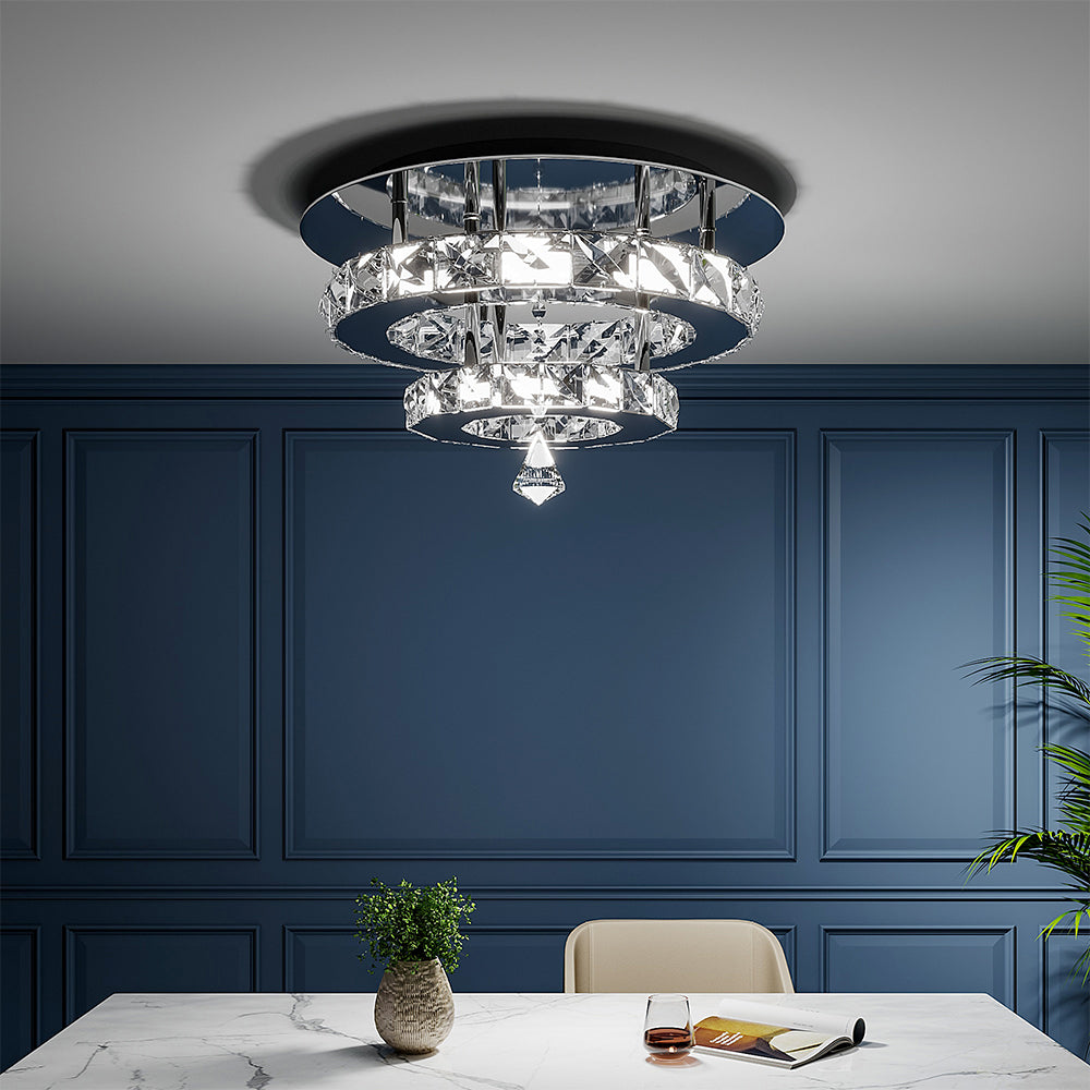 The moment you set eyes on this ceiling light, you will be attracted by the unique layered design. The two luminous layers each have a faceted crystal edge, which adds an elegant embellishment to this light. With the combination of chrome finish and crystal accents, this light can be a wonderful decoration in any style of the living room. If you happen to be searching for a light to upgrade your living space, then our crystal semi-flush mount is a no-brainer.