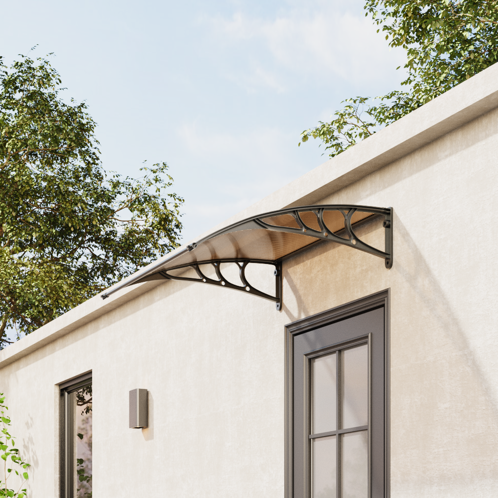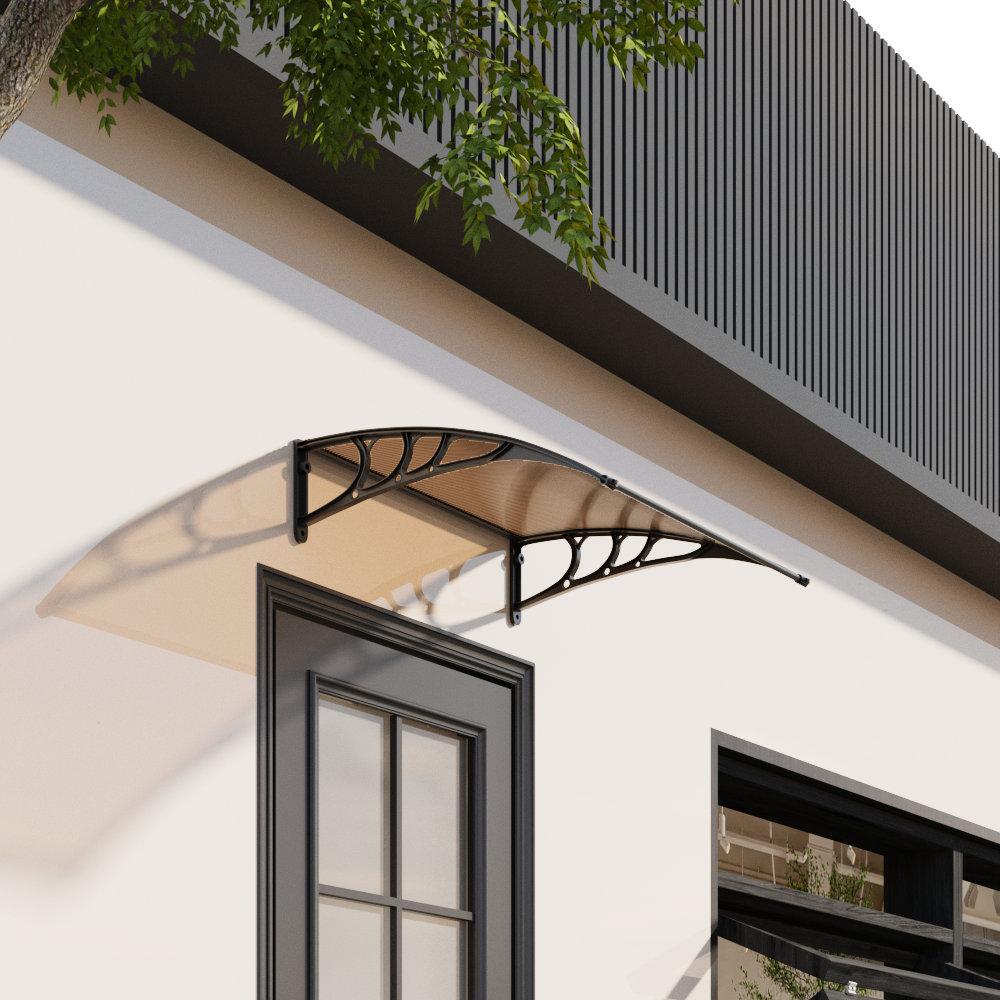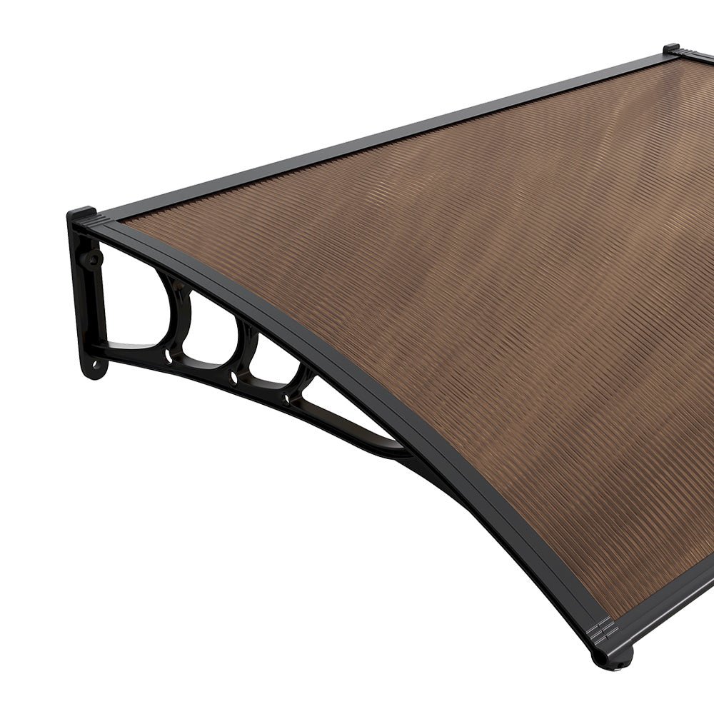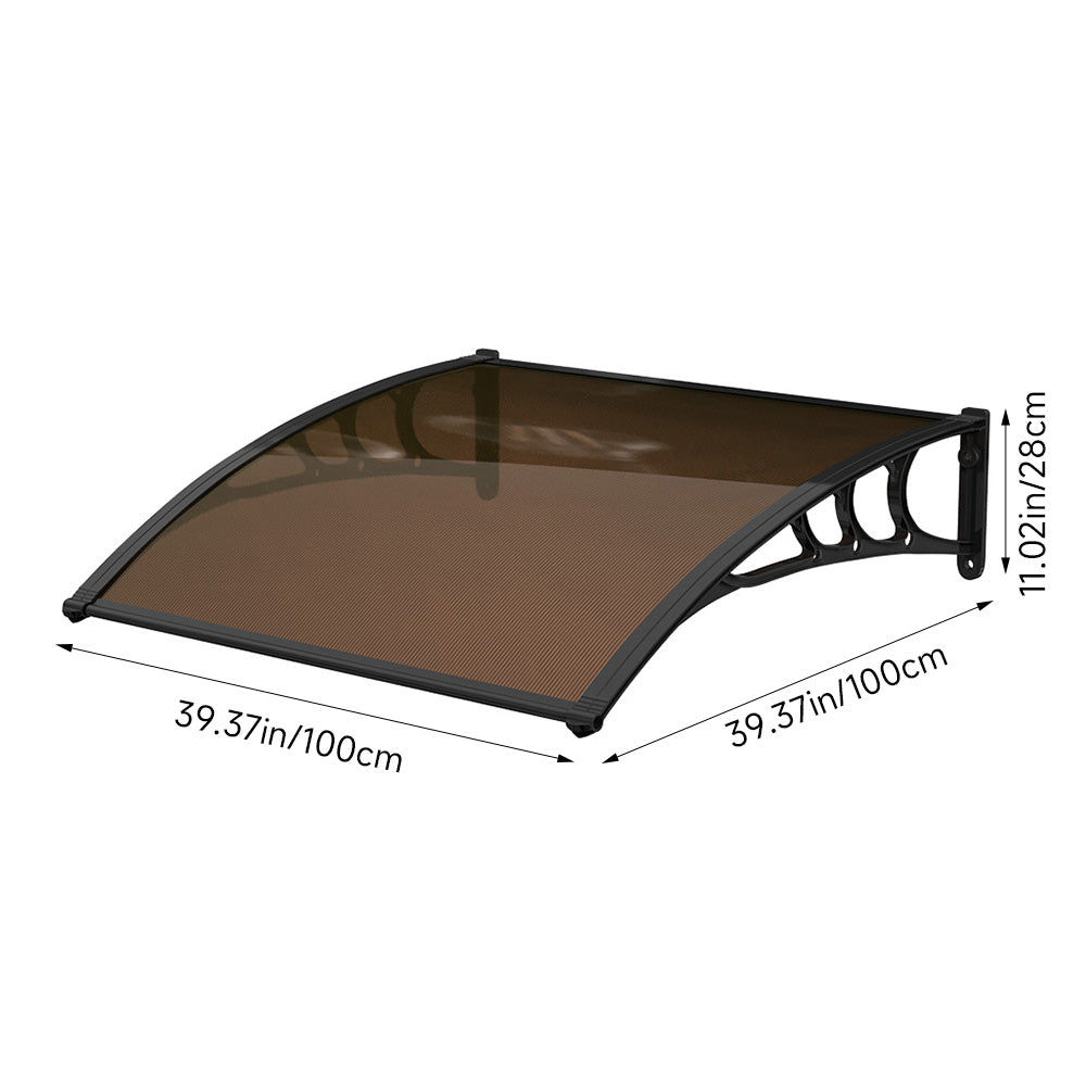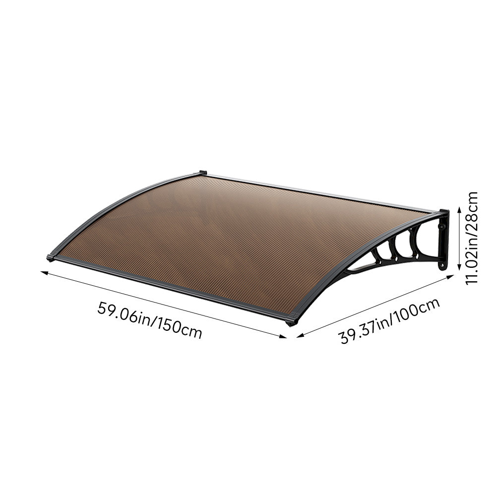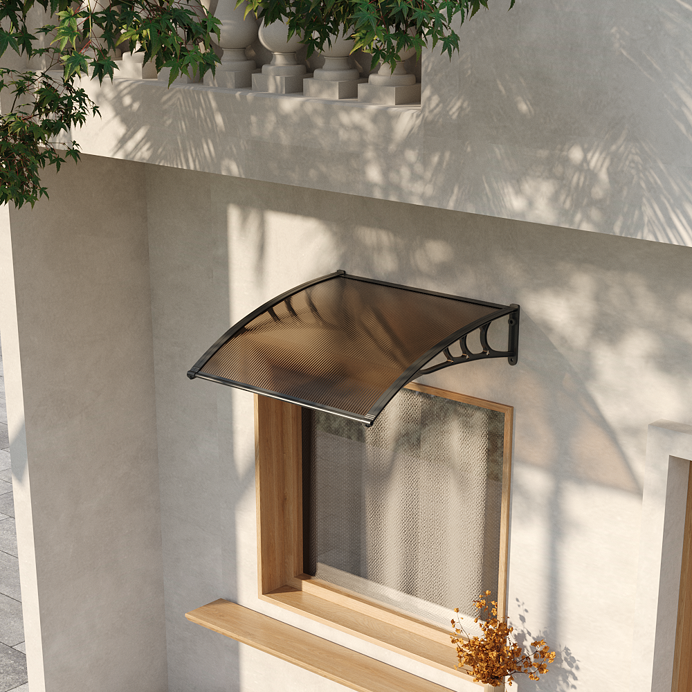 Enhance your outdoor space with an awning canopy that combines beauty and functionality. Featuring a robust design with high-strength plastic brackets and aluminum alloy fixing bars, it ensures stability and long-lasting durability. The curved PC panel adds an aesthetic touch while preventing rain and snow accumulation. Providing UV protection, it shields the area beneath from harsh sunlight. Easy to install, it is perfect for front doors, balconies, windows, shopfronts, patios, and garden doors. The coverage can be expanded by connecting multiple units, thus providing both enhanced practical protection and superior visual appeal.