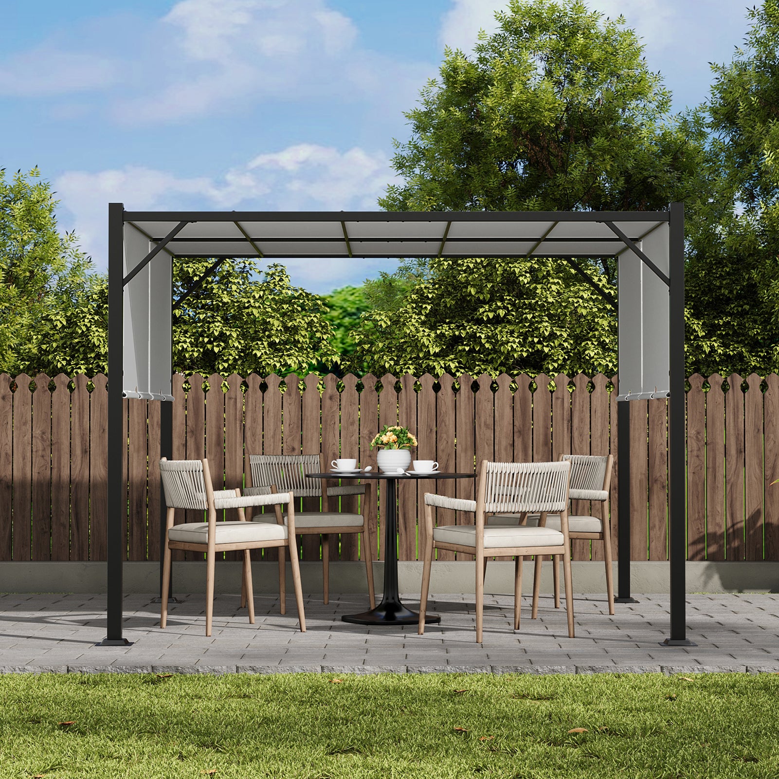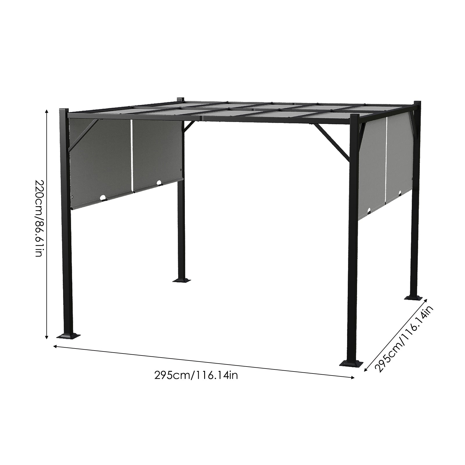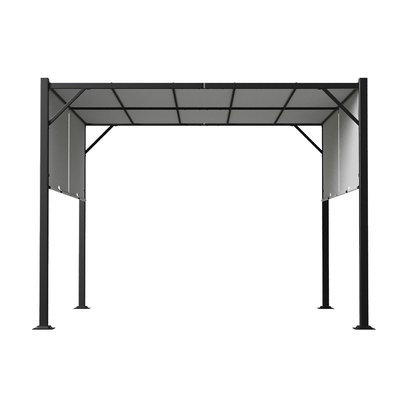 Transform your outdoor area with this sophisticated metal pergola featuring a retractable canopy. Ideal for courtyards, patios, and gardens, its generous dimensions provide ample space for social gatherings while maintaining proper ventilation. The structure's durable steel tube frame delivers outstanding stability, complemented by PA-coated polyester fabric that offers superior waterproofing and UV protection. This thoughtfully engineered pergola enhances outdoor living quality while providing a cool, sheltered environment for your leisure activities.